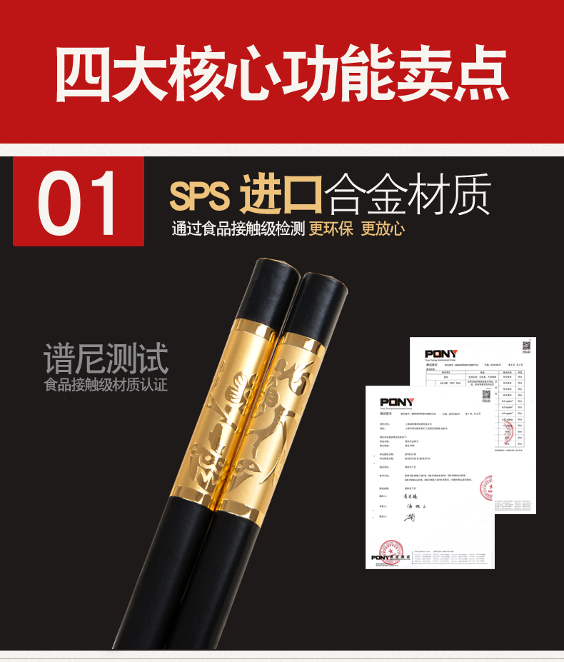 【居家必备】SPS进口合金材质,可耐220℃高温消毒,多种款式可选,通过食品接触级检测认证,守护家人健康从筷子开始!【赠送运费险】