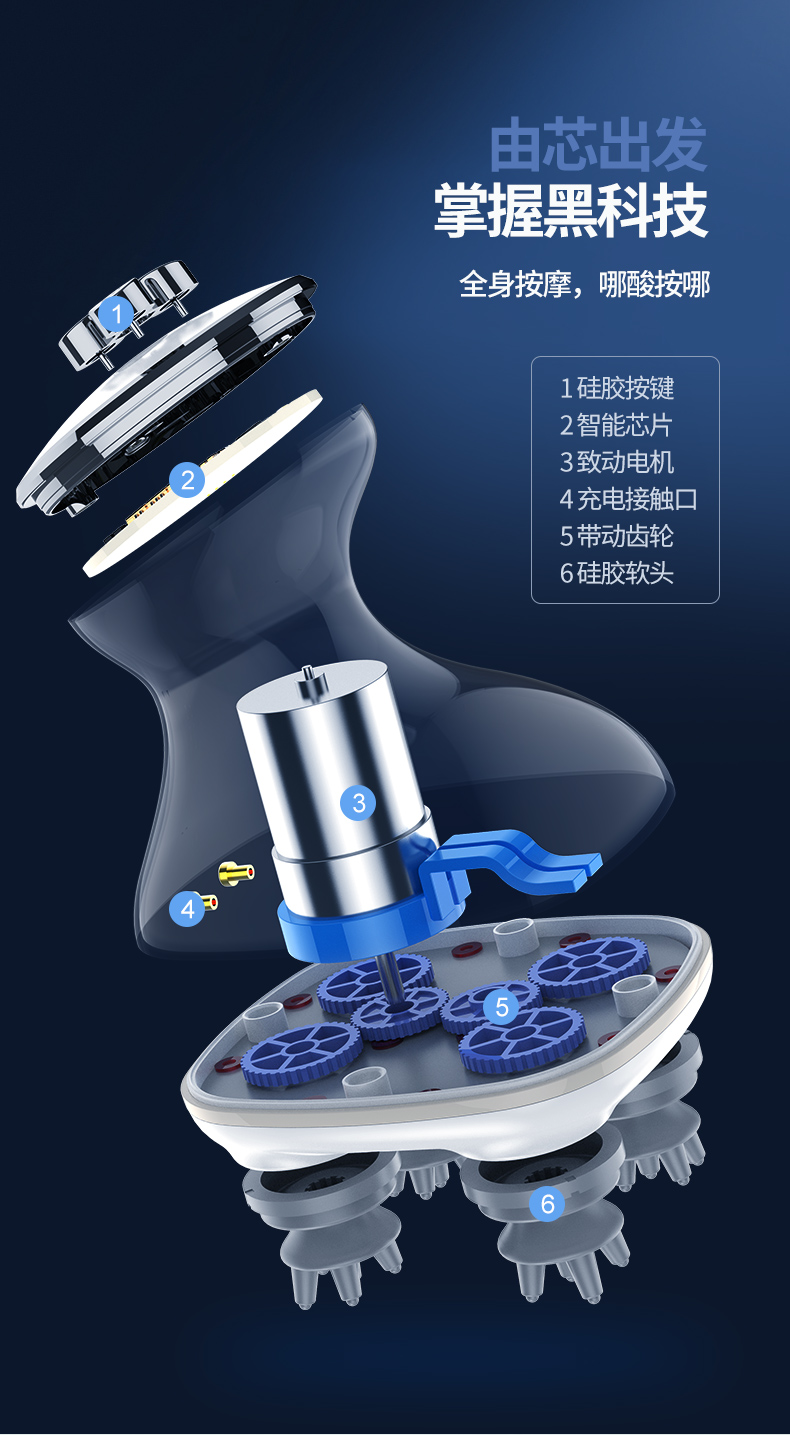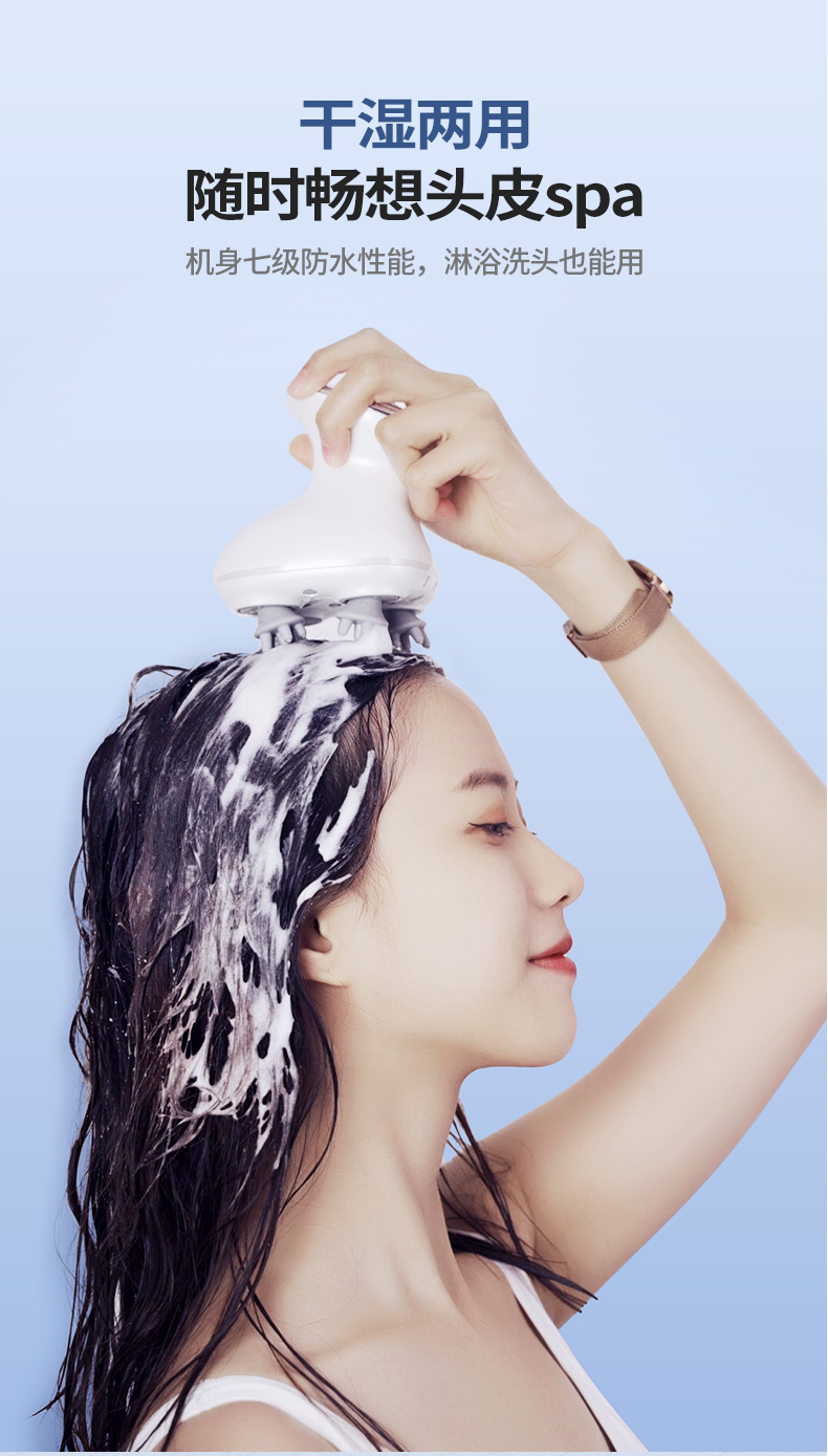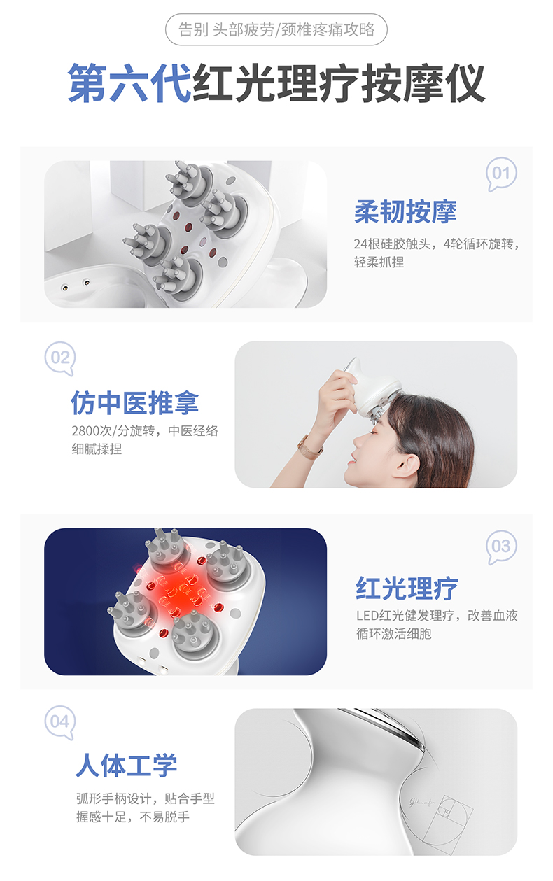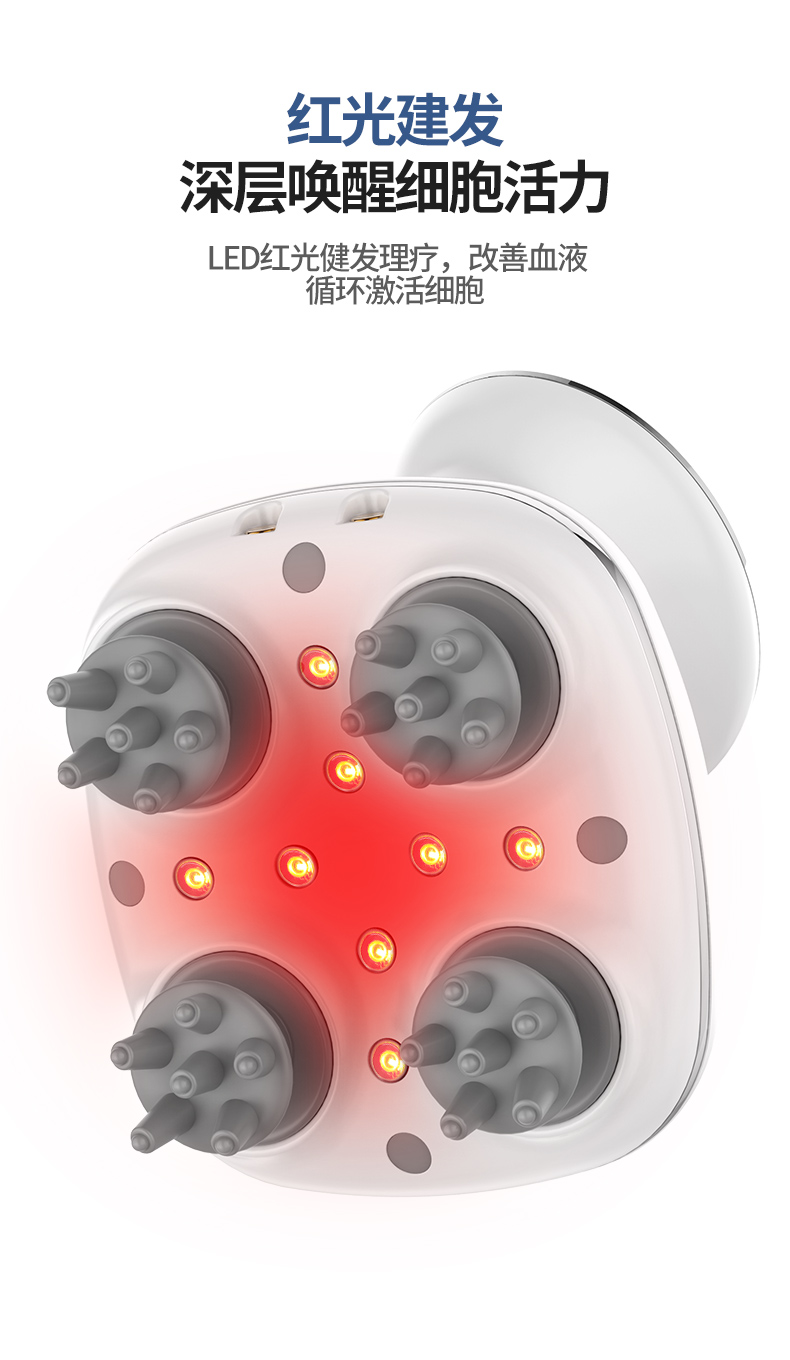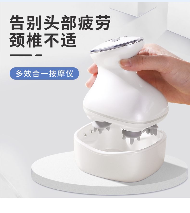 【下单即送蒸汽眼罩+洗脸巾】放松头皮,按摩颈椎,干湿两用,舒缓头疼,红光理疗按摩仪,缓解颈椎不适,硅胶软触头,静音降噪按摩,超长持续,持久耐用,安全充电底座。