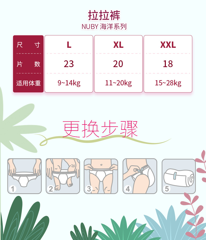 Nuby努比海洋系列宝宝拉拉裤超薄纸尿裤婴儿学步裤成长裤XL20片