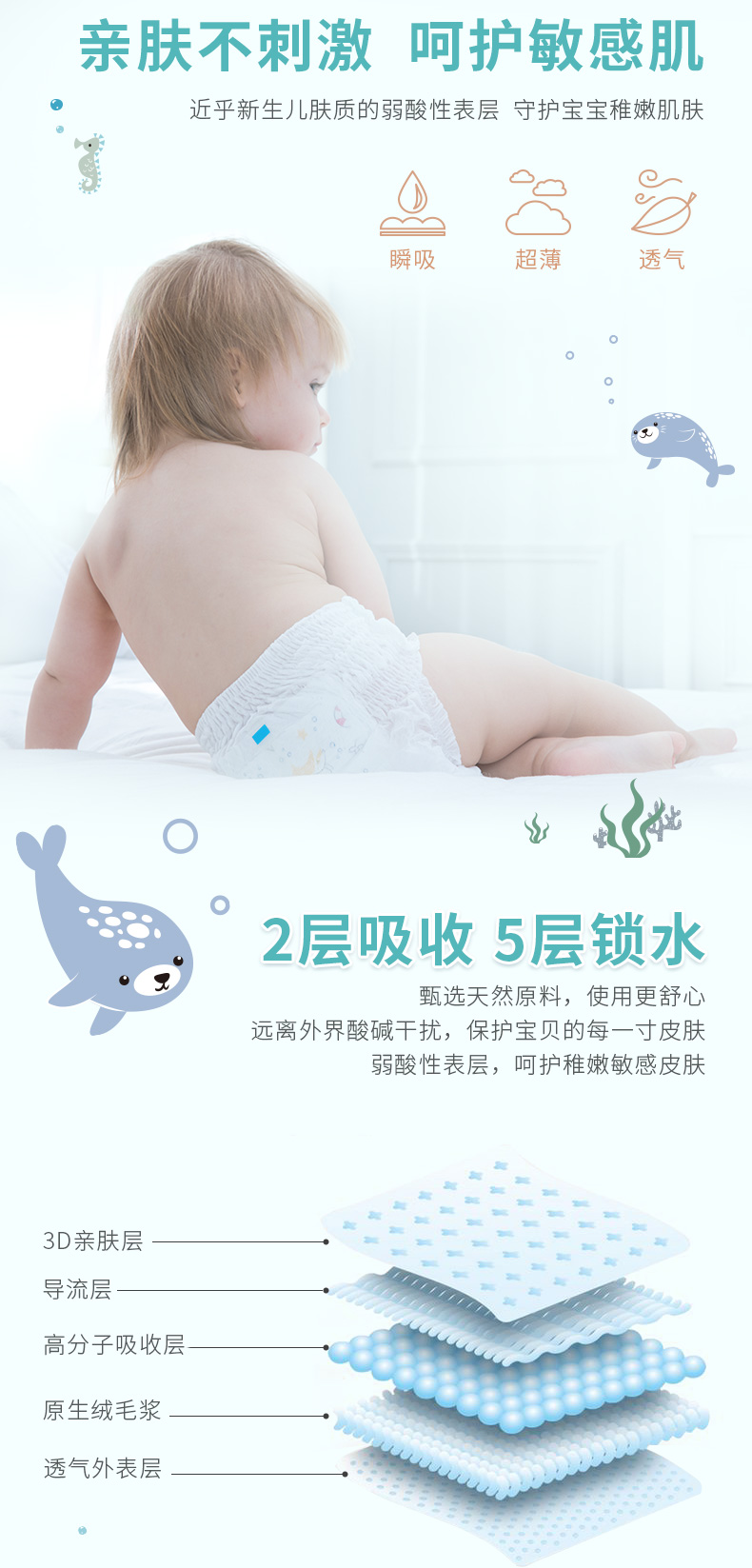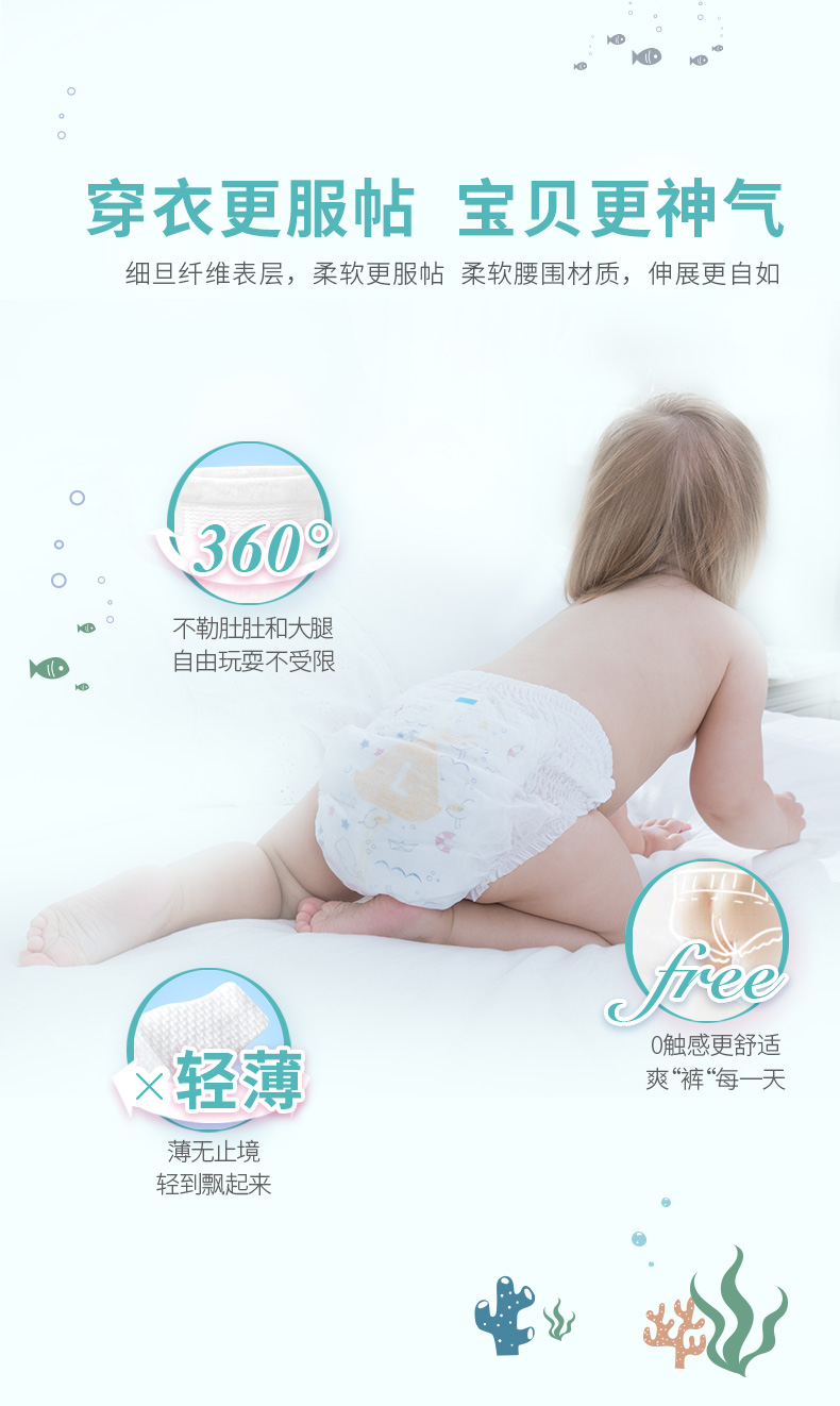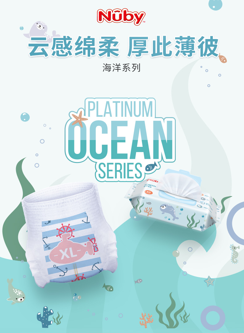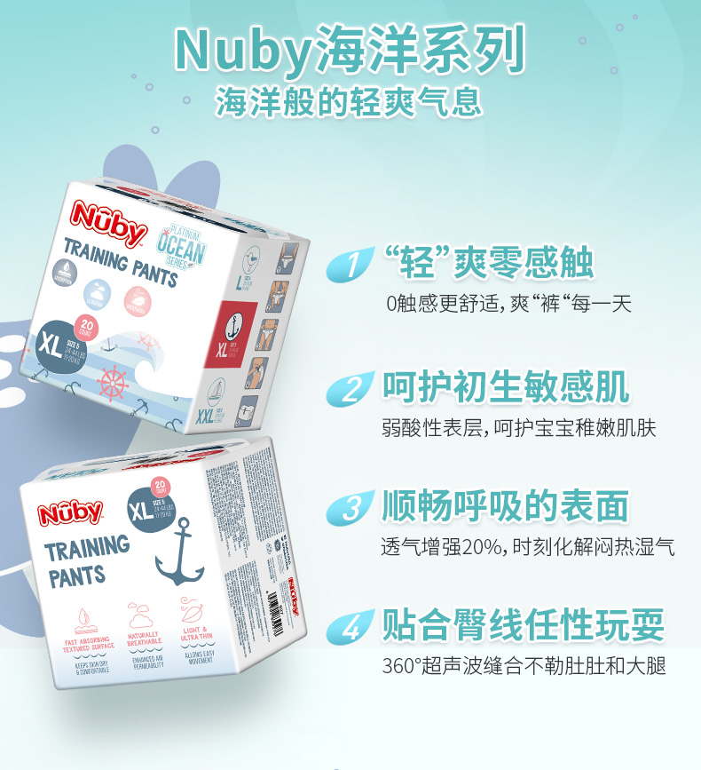 Nuby努比海洋系列宝宝拉拉裤,超薄纸尿裤婴儿学步裤成长裤XL20片,拒绝红屁屁【赠运费险】