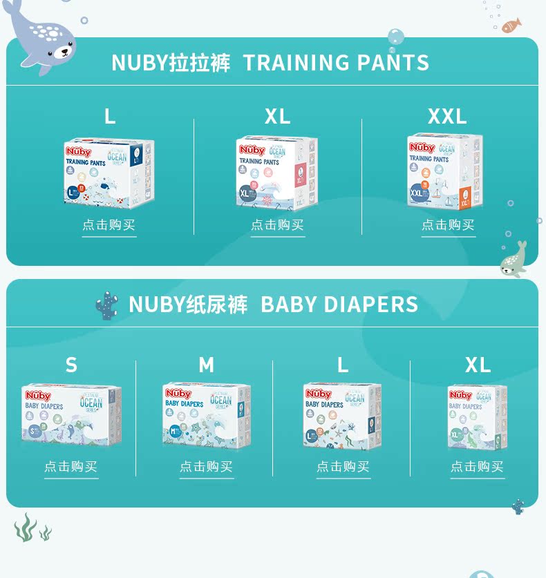 【nuby母婴旗舰店】Nuby努比海洋系列宝宝拉拉裤,超薄纸尿裤婴儿学步裤成长裤XXL18片,舒适透气,拒绝红屁屁【赠运费险】