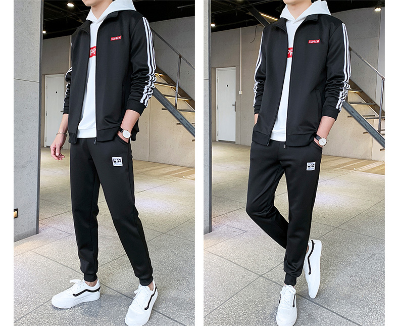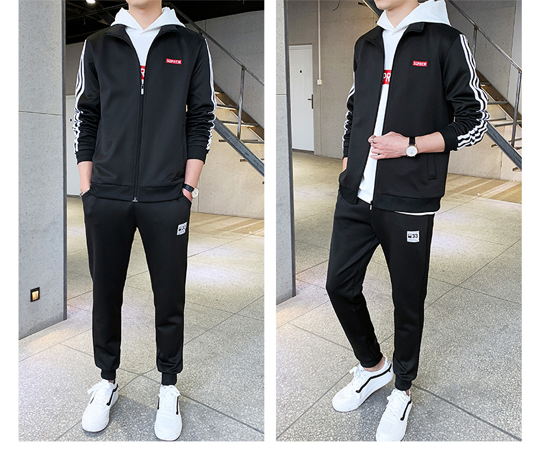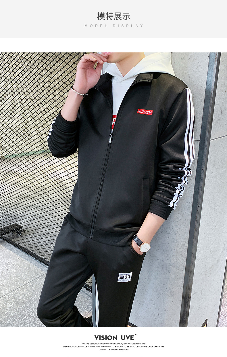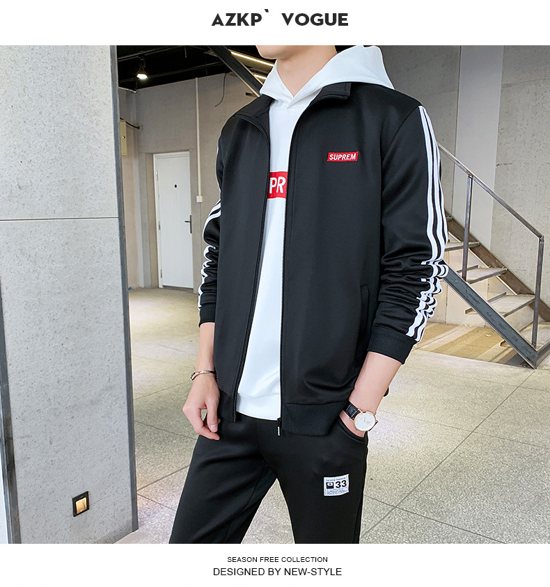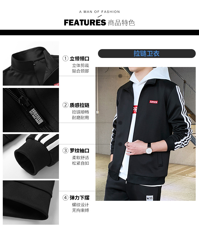 男士2019秋冬季新款卫衣宽松连帽加绒潮流运动套装秋冬款嘻哈外套