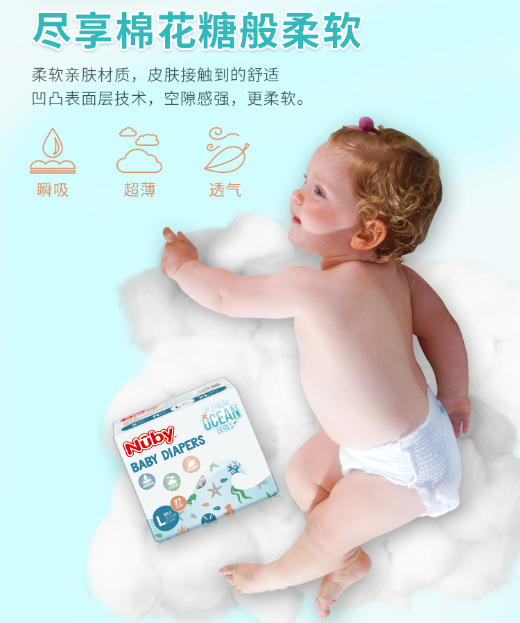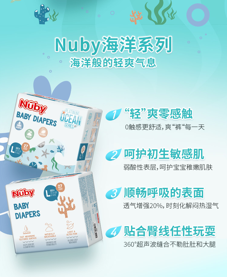 Nuby海洋超薄透气纸尿裤,XL22片男女宝宝通用尿不湿,婴儿尿裤尿片,拒绝红屁屁【赠运费险】