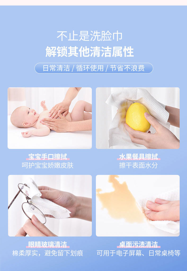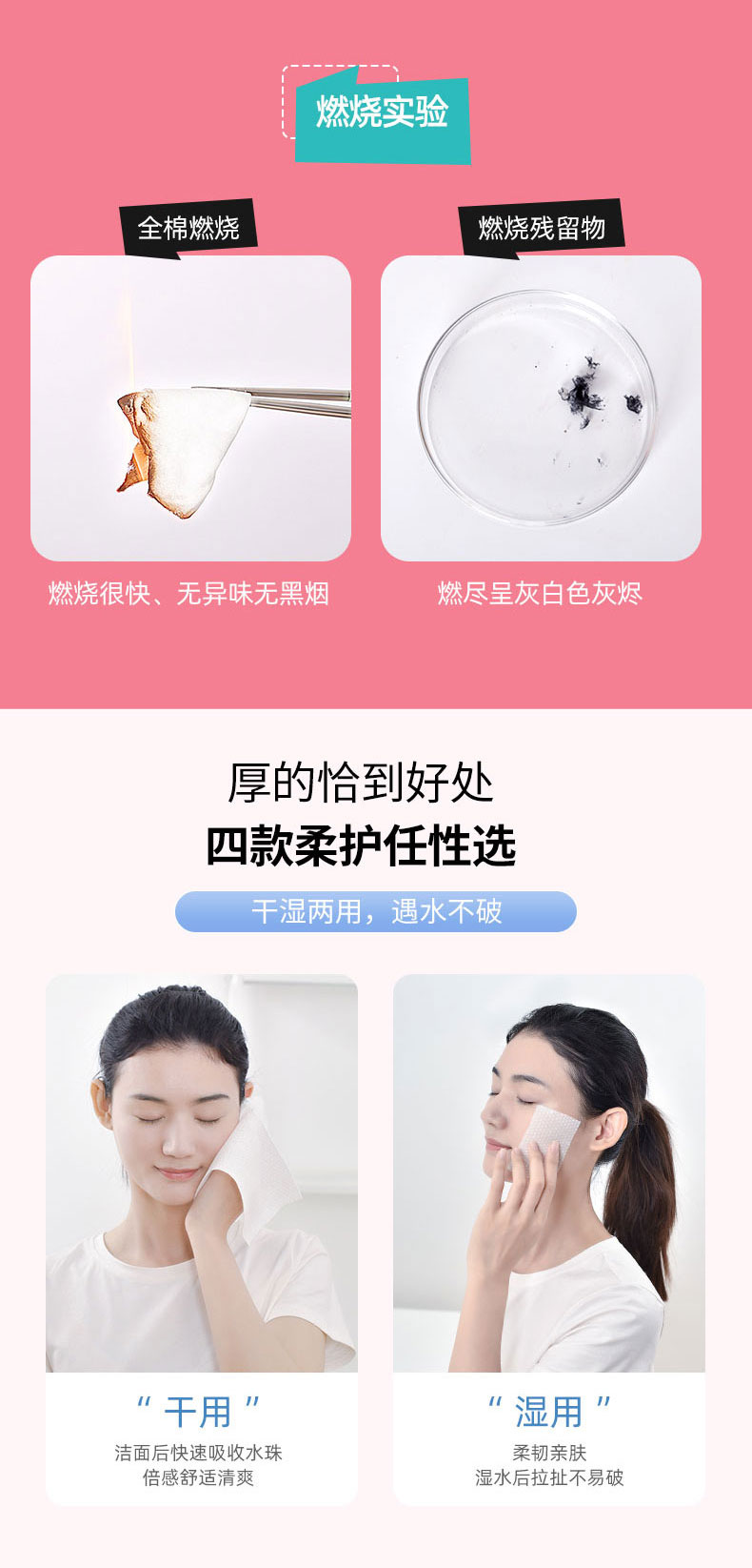 当代流行的洗脸方式!天然好棉,干湿两用,不掉絮,无漂白剂,无荧光剂,亲肤柔软;比毛巾卫生,比纸巾好用,比湿巾更柔软!AB两面设计,洁面巾,哪里需要擦哪里!赶紧囤起来~