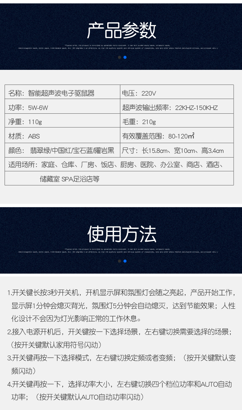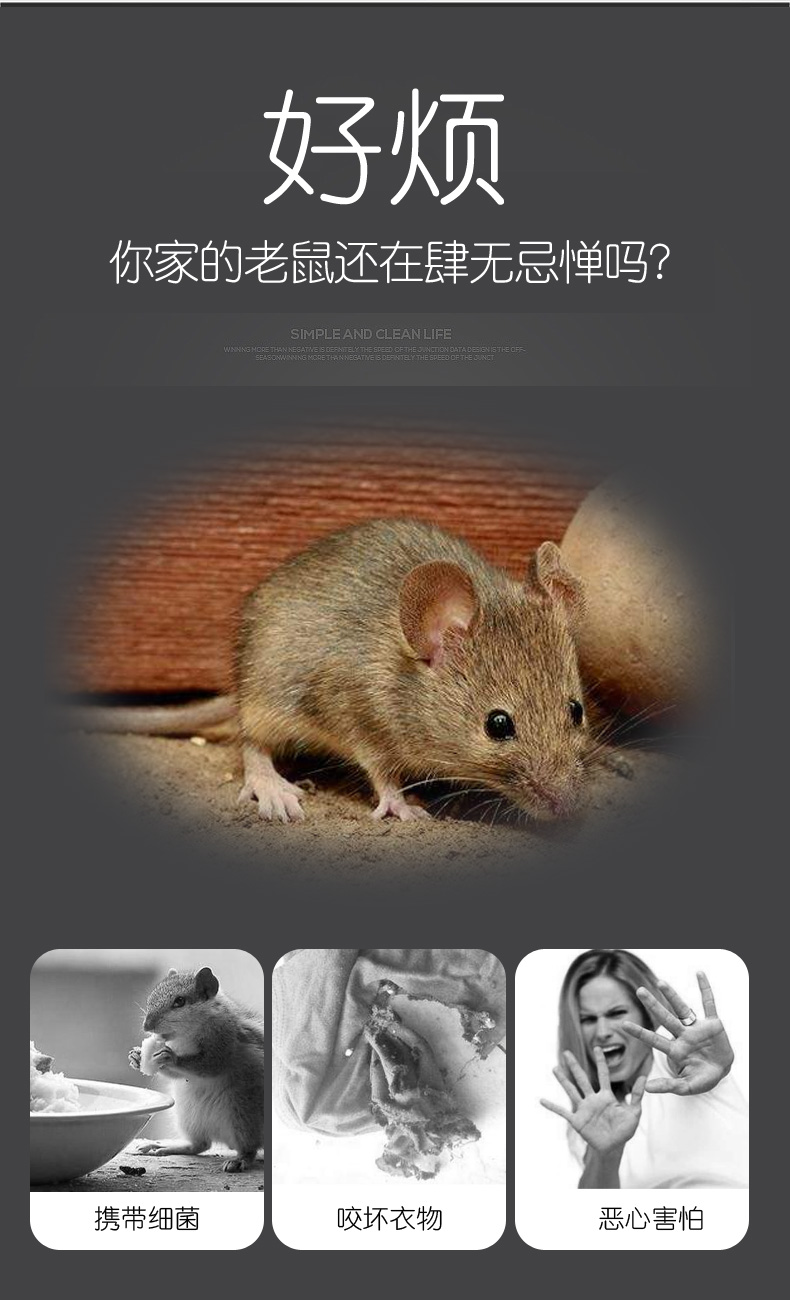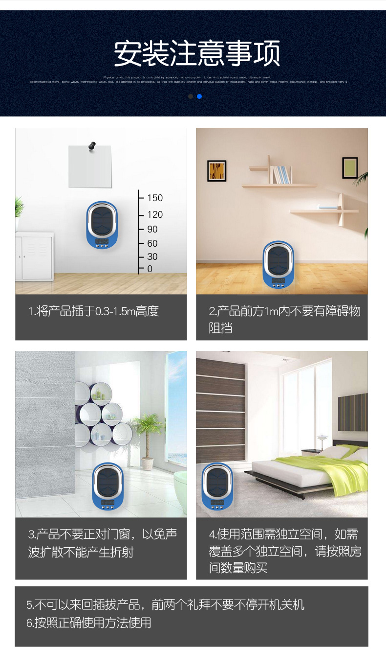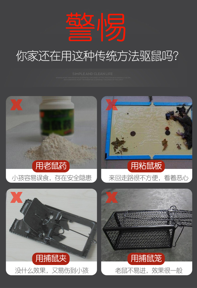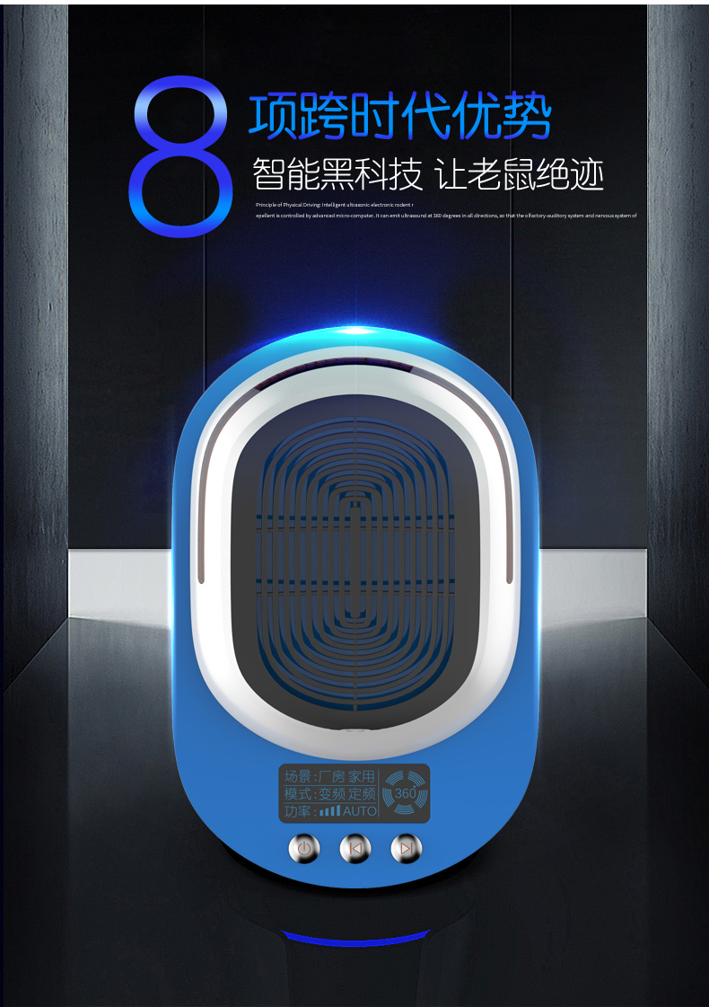 家用超声波驱鼠器,360度全方位发射超声波,智能变频驱鼠,120天无效退换,静音无噪,孕婴皆适用。双喇叭全面攻击,150平大面积覆盖,彻底解决鼠害,还您一个健康安静的生活!
