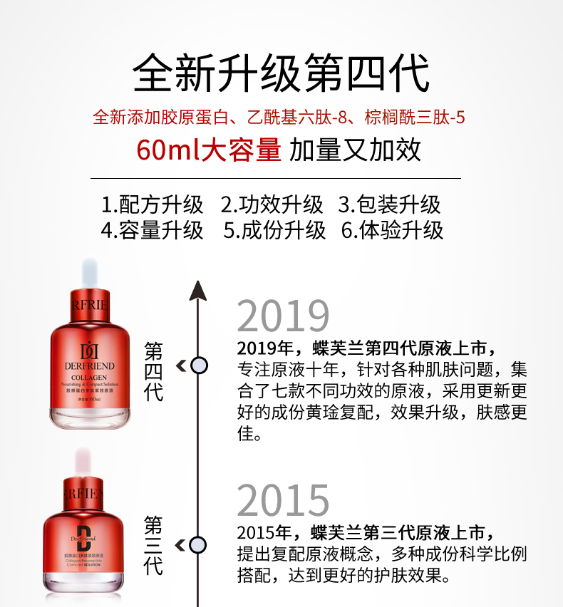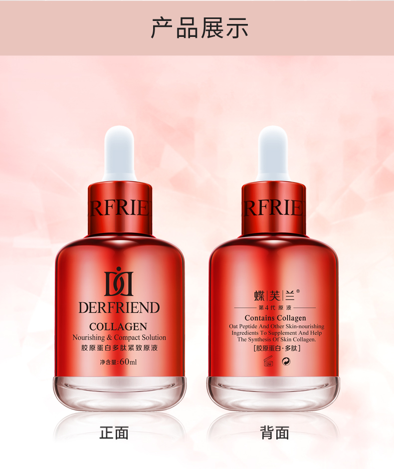 全新胶原蛋白能量原液,搞规格水解胶原,持续为肌肤补充胶原蛋白,六大特点,高渗透,好成分,高浓度,易吸收,高保湿,强修护,长期使用使皮肤更有弹性哦。