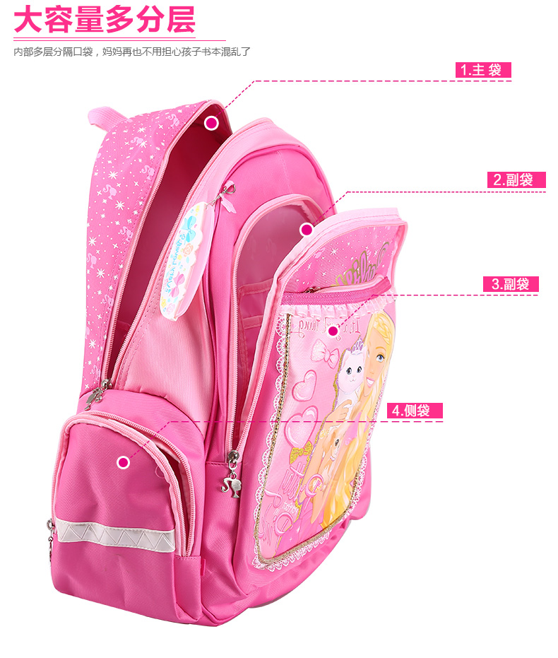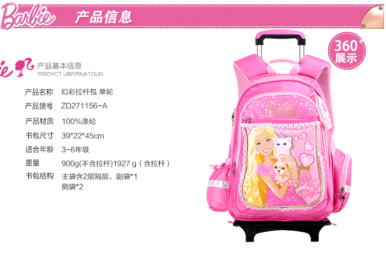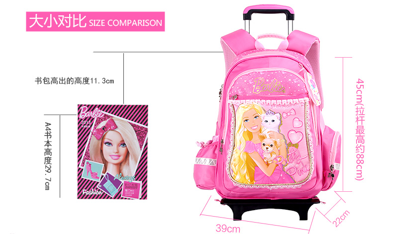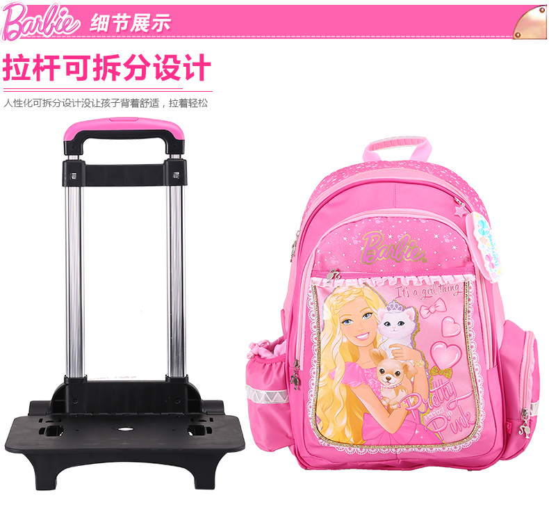 拉杆书包小学生1-3-5年级女孩芭比公主女生4-6年级手拉拖儿童12岁