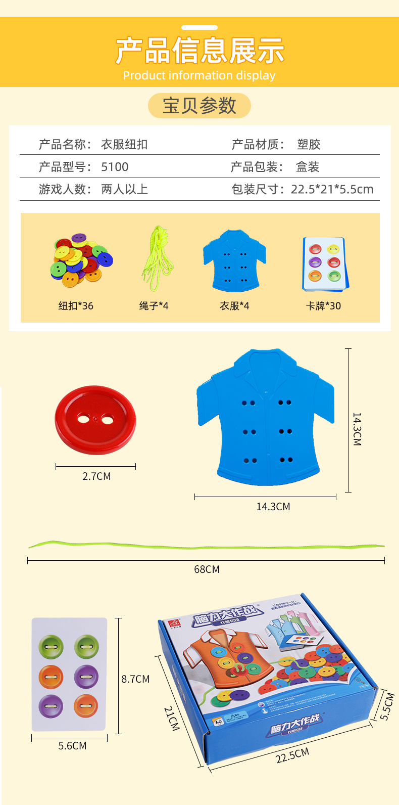 【提高动手能力,手眼协调】宝宝喜爱!穿扣子专注力训练玩具!色彩鲜艳,图形生动,吸引孩子动手动脑,提高反应力锻炼孩子手眼协调能力!