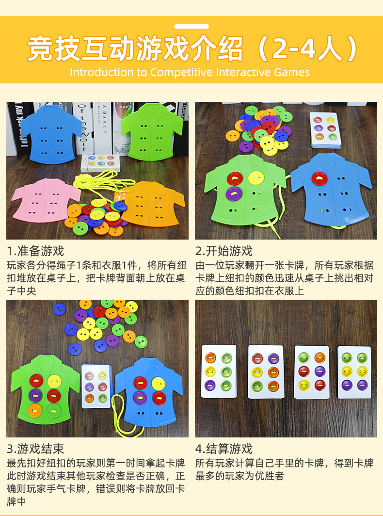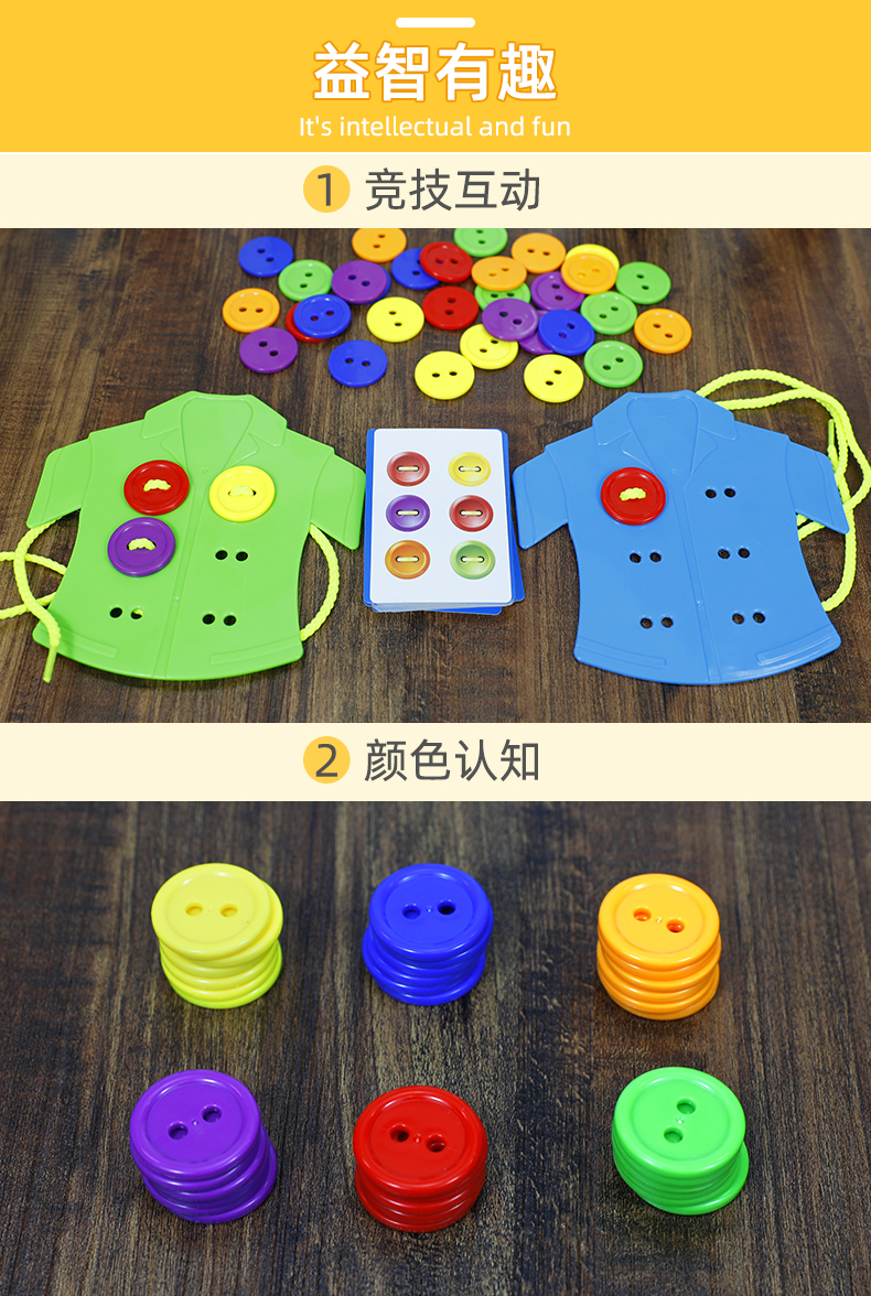 儿童益智早教幼儿园桌面游戏衣服纽扣专注力颜色认知玩具生日礼物