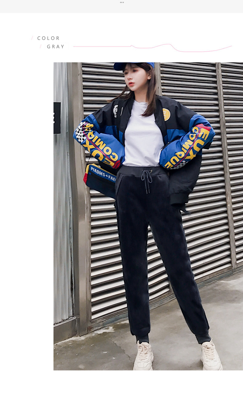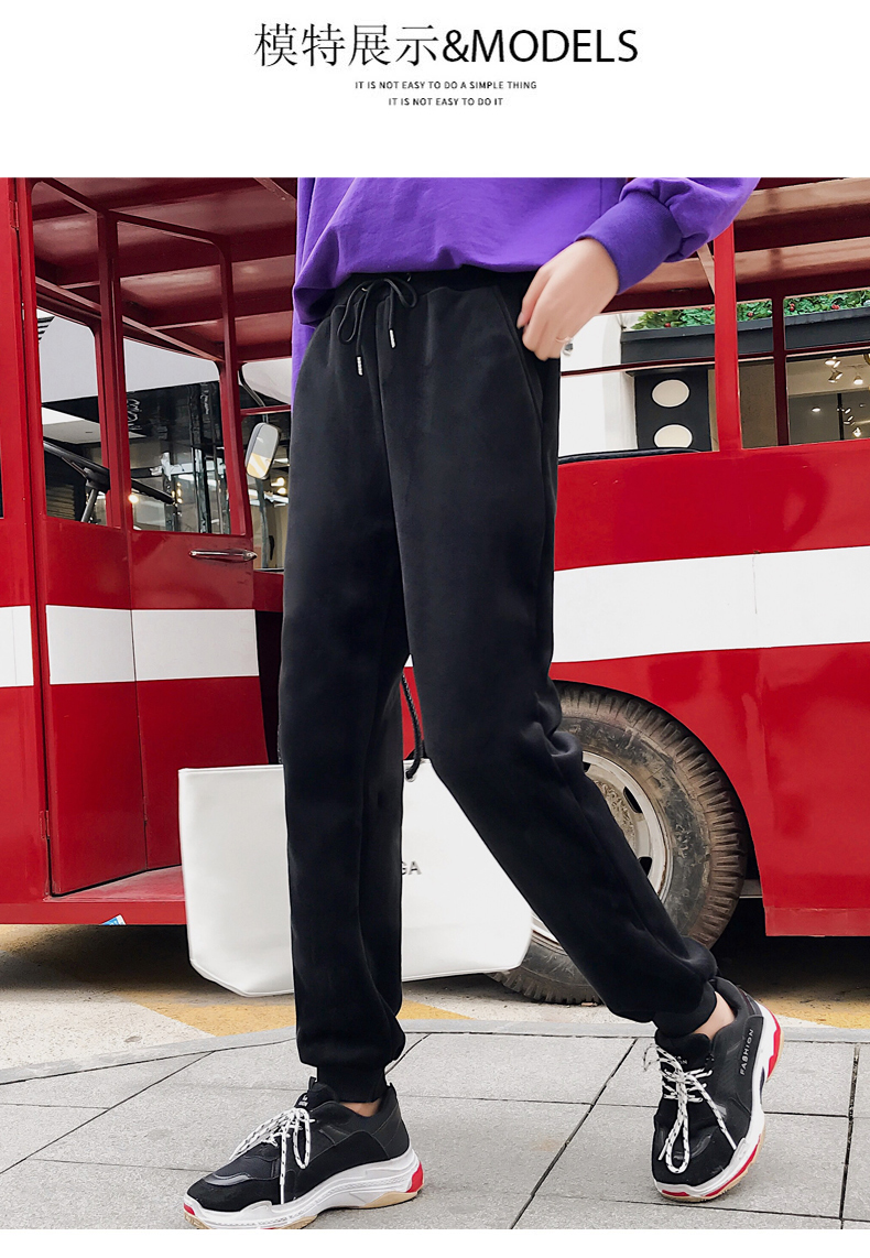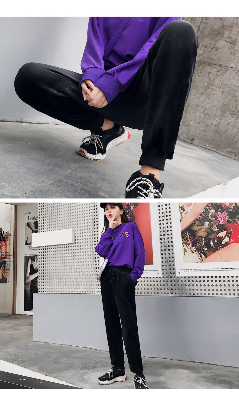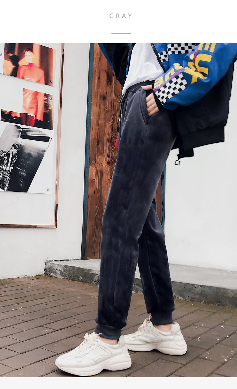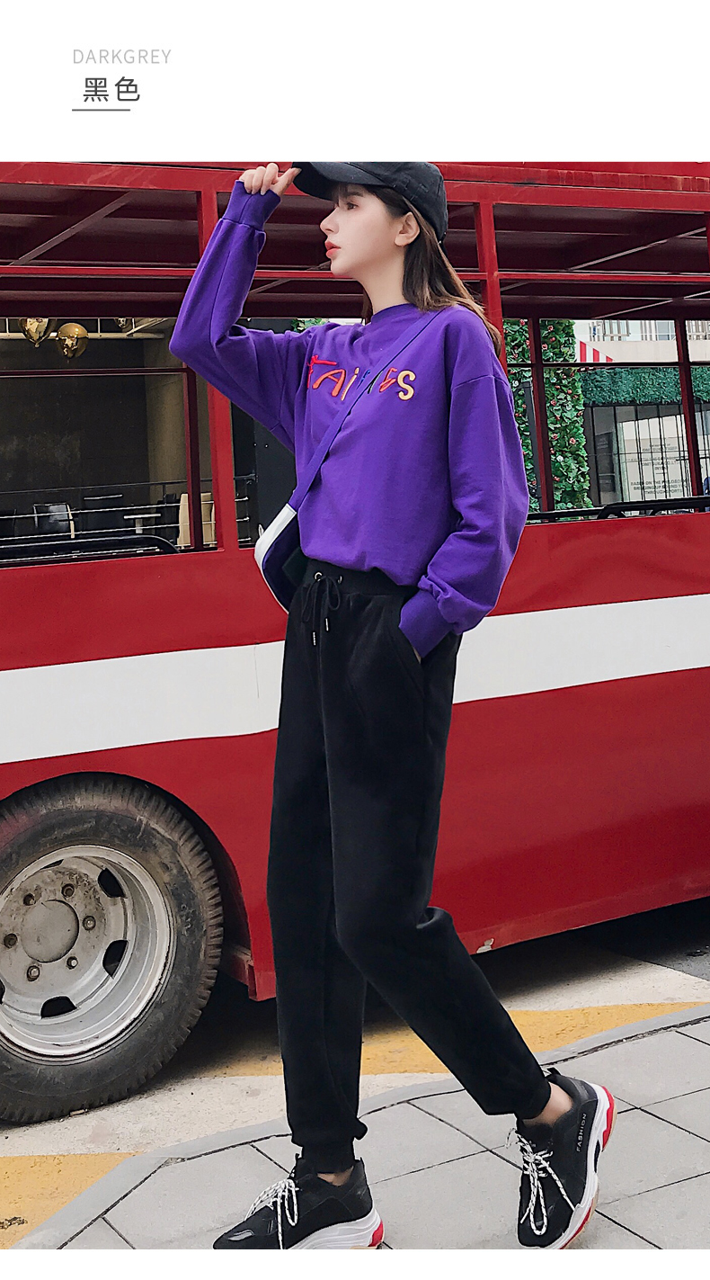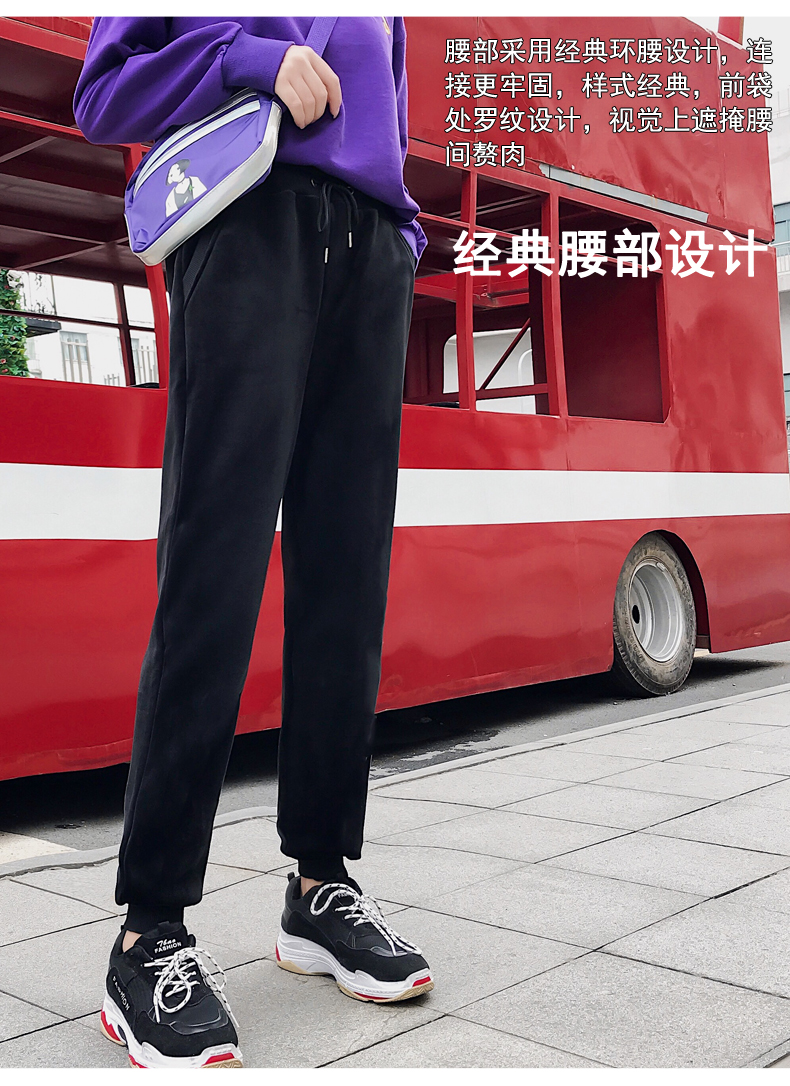 金丝绒阔腿裤女秋冬季加厚休闲运动裤女宽松束脚黑色萝卜哈伦裤子