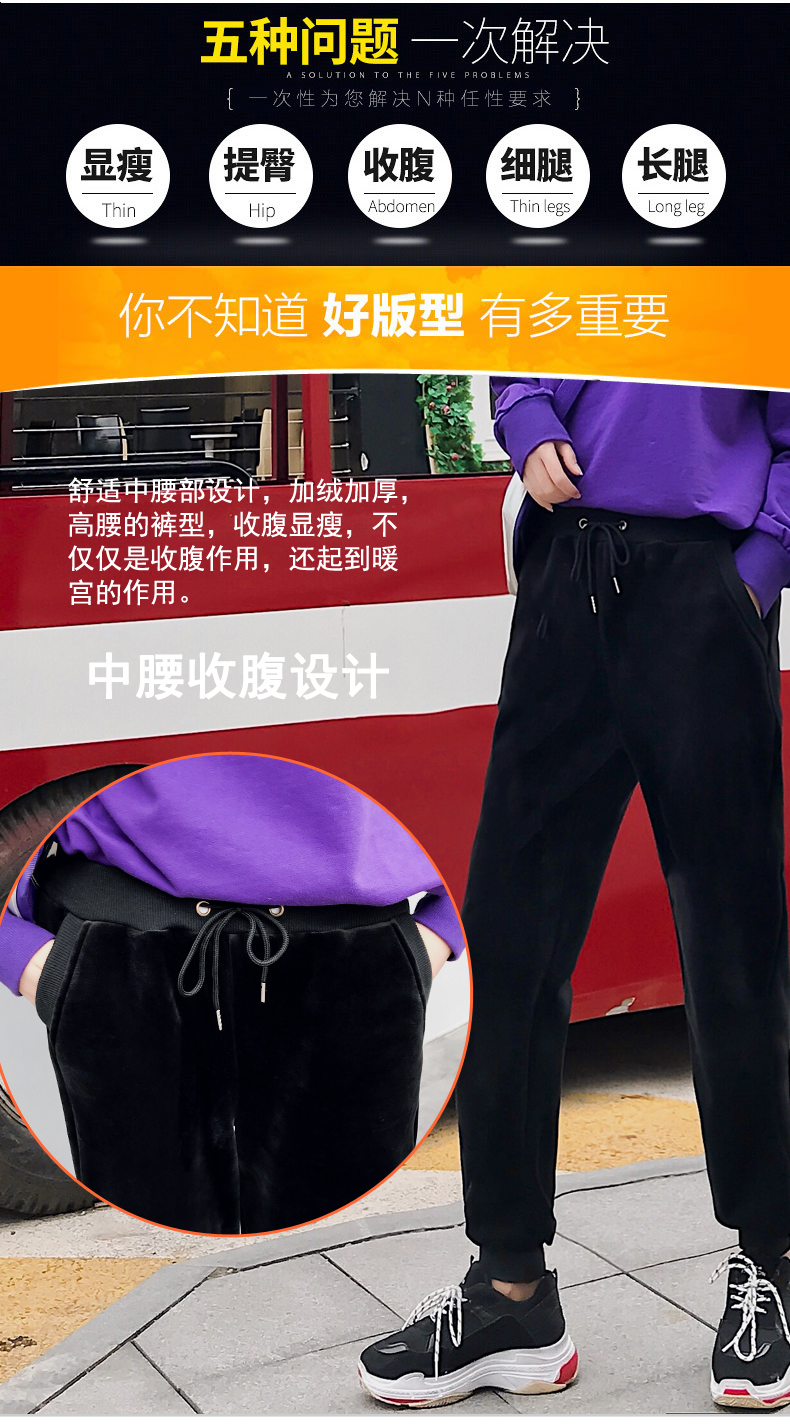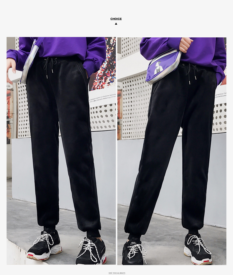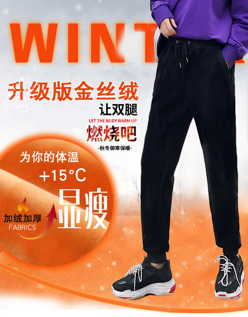 金丝绒优质面料,不起球、不褪色,手感柔软,舒适保暖!贴身穿不扎人,不挑身材,很时髦很好看,穿上非常显腿长,怎么搭配都不踩雷,你的衣柜就需要这样一条裤子!
