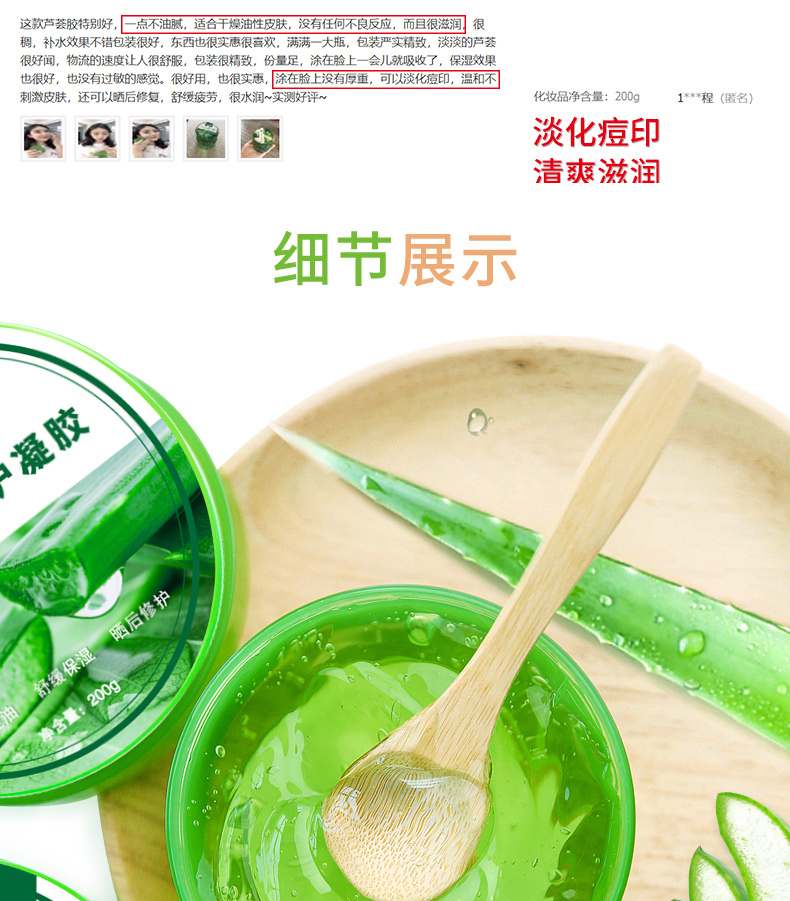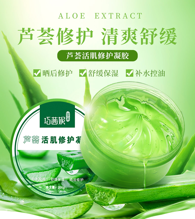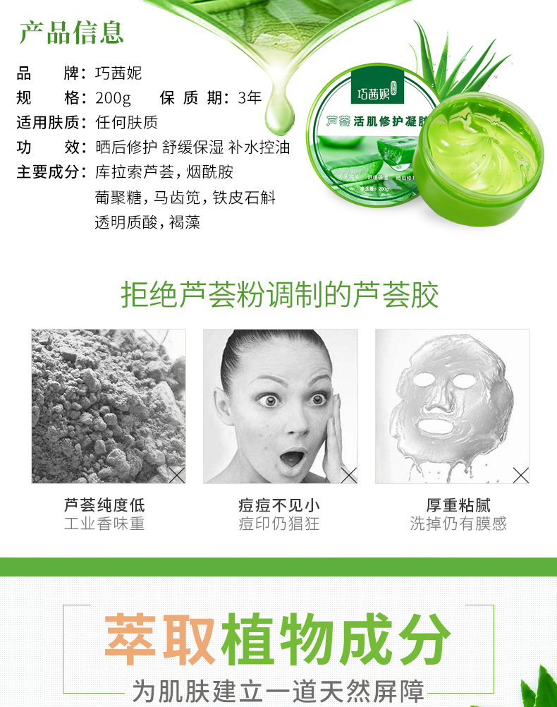 国品巧茜妮芦荟胶正品祛痘痘印痘坑补水保湿晒后修复面膜凝胶女男