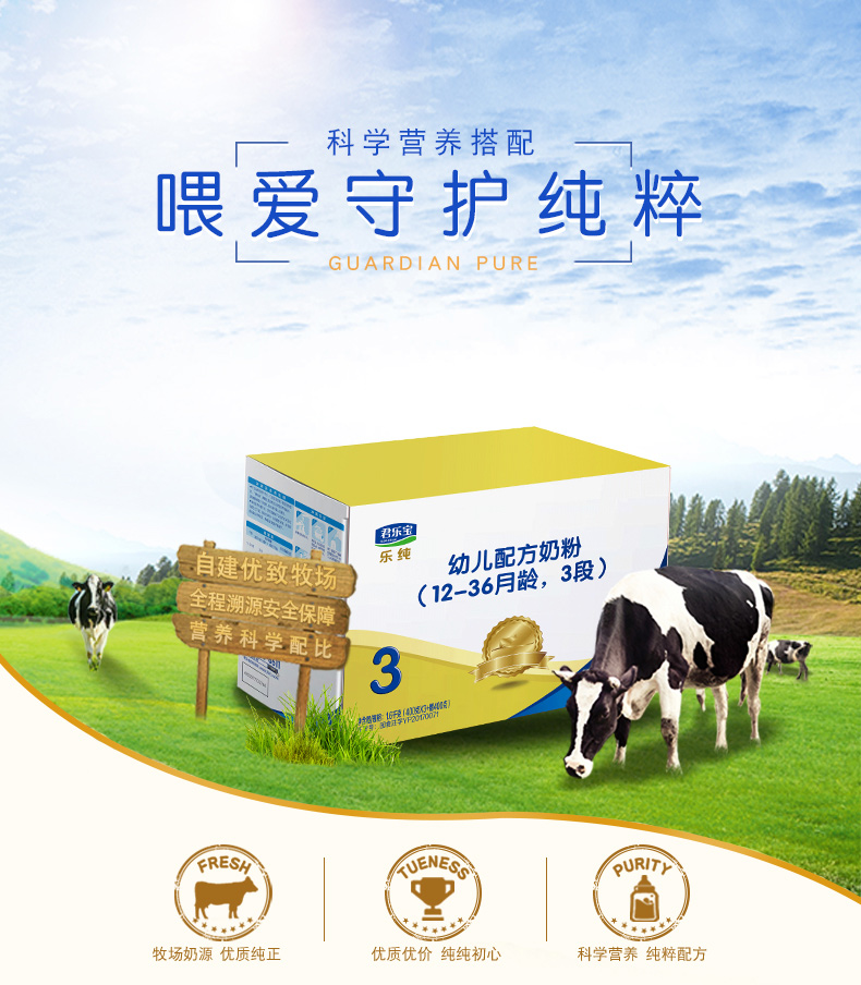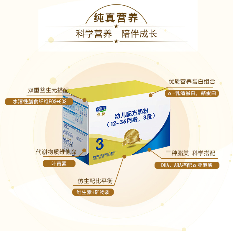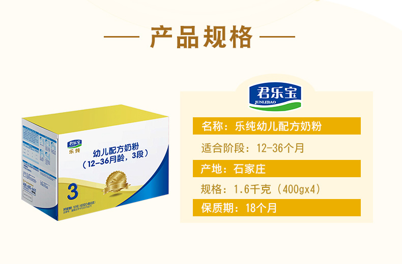 领劵立减】君乐宝奶粉3段 乐纯四联包婴幼儿牛奶粉三段盒装1600g
