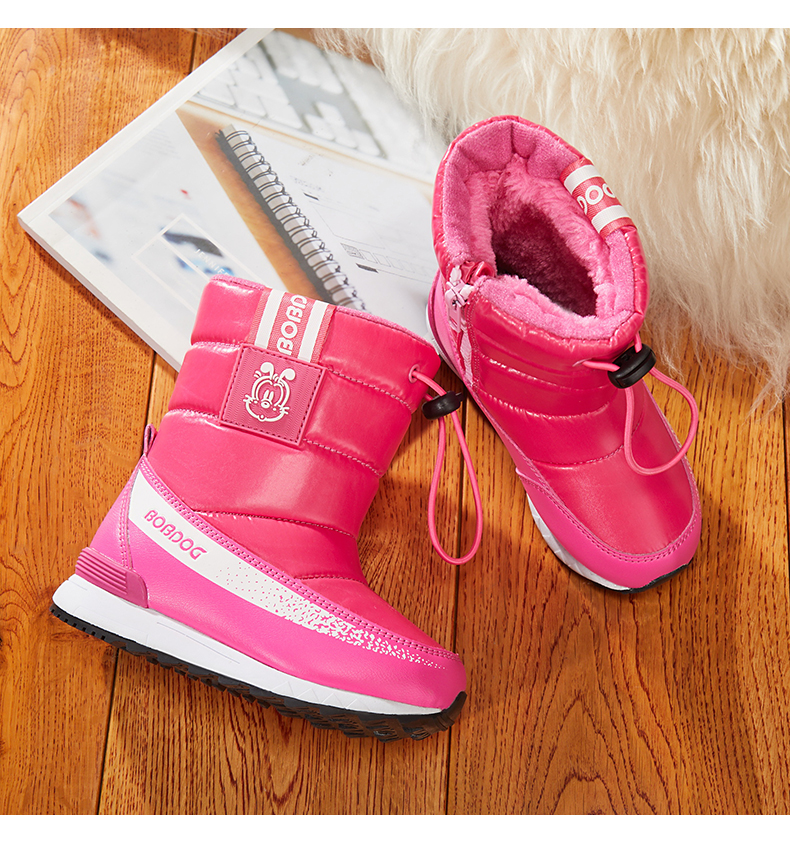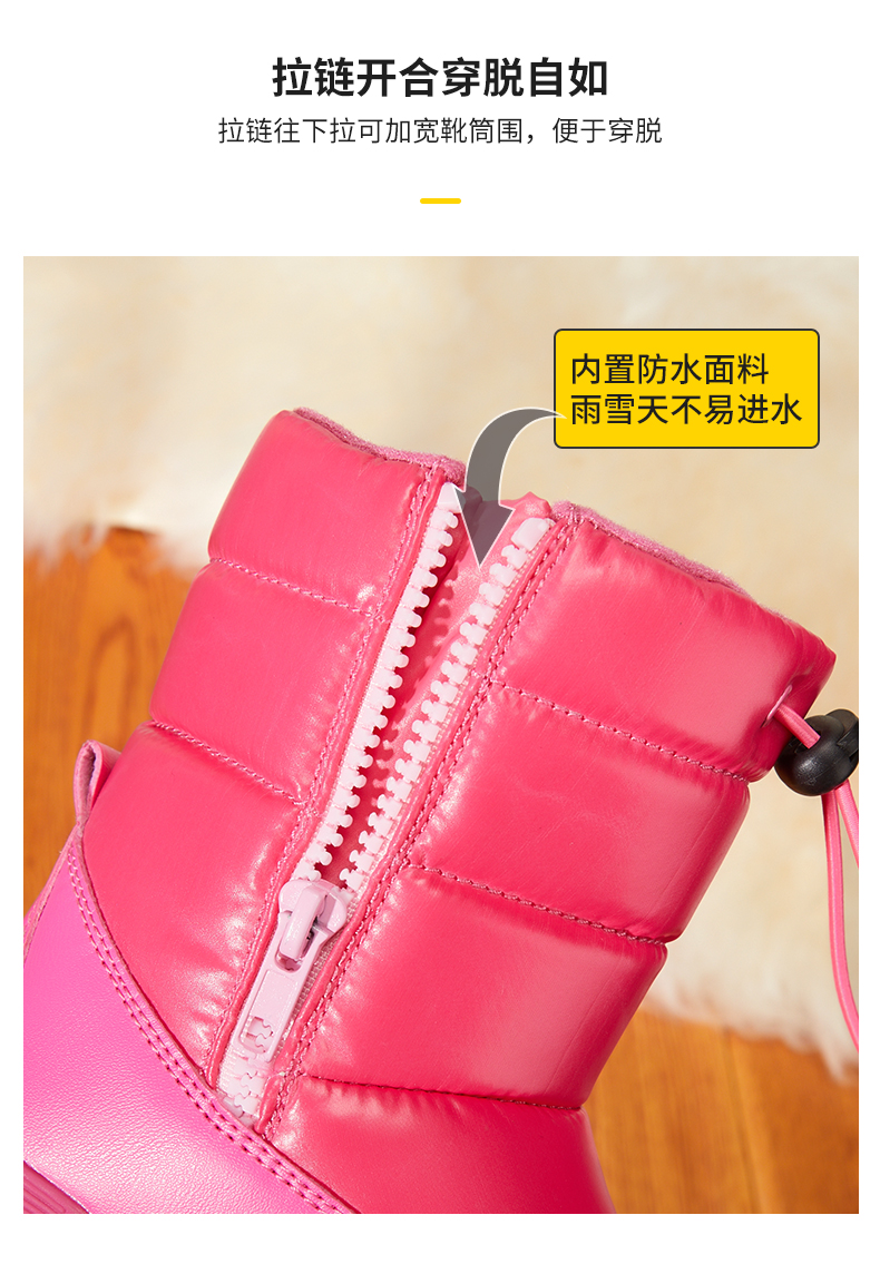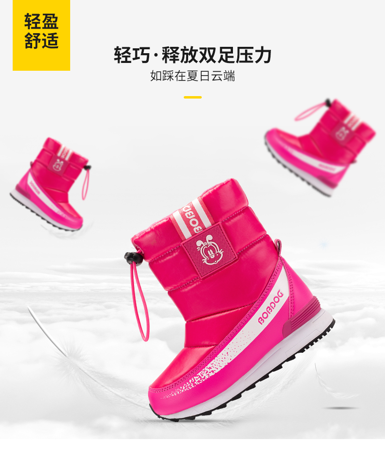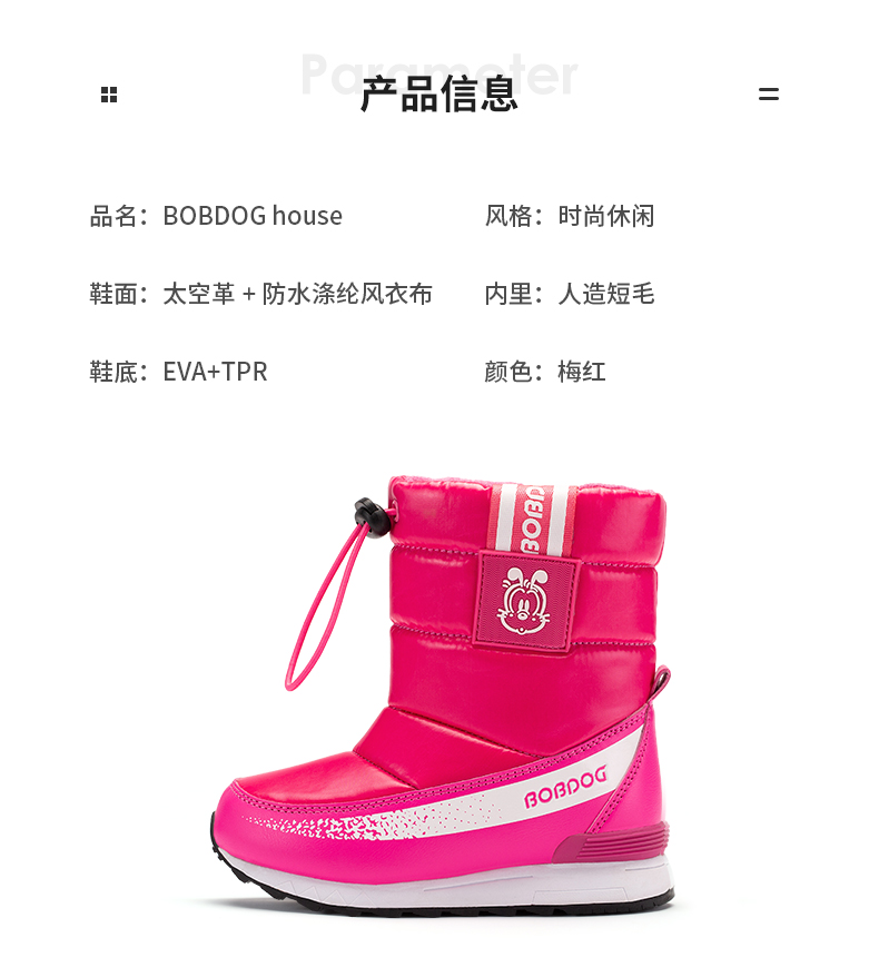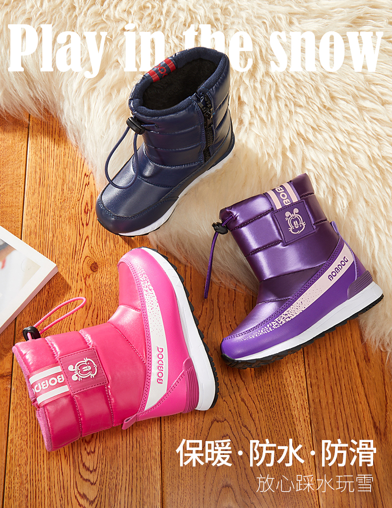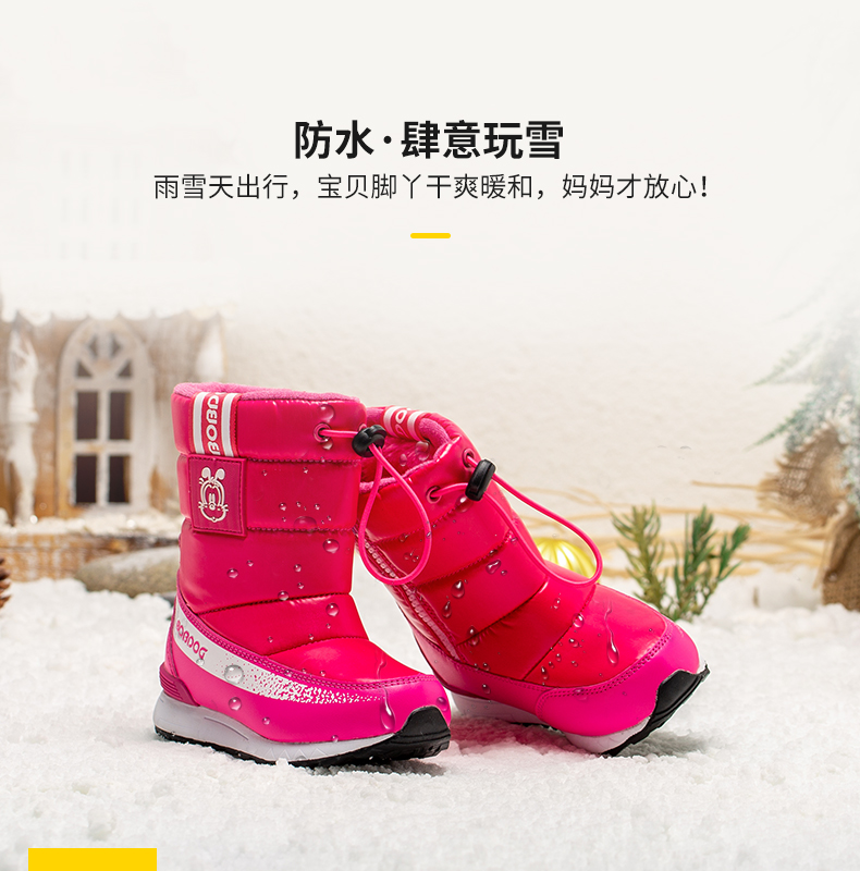 巴布豆house儿童雪地靴女童冬季加绒加厚防水男童棉鞋防滑保暖靴