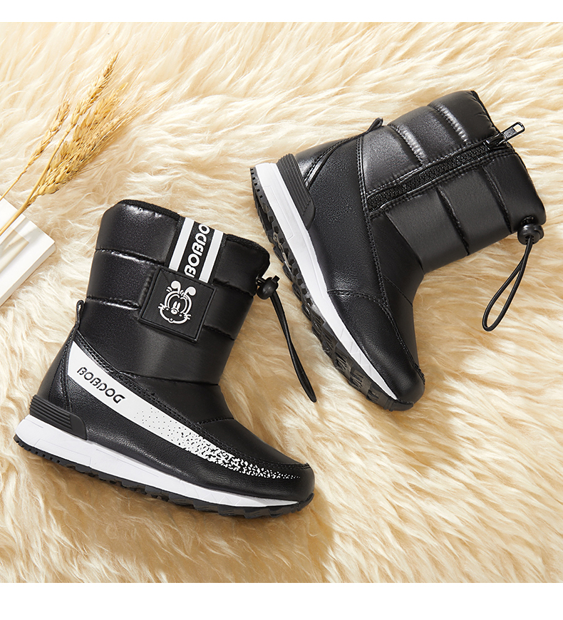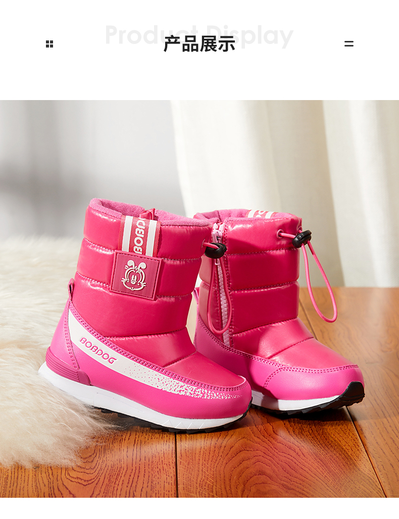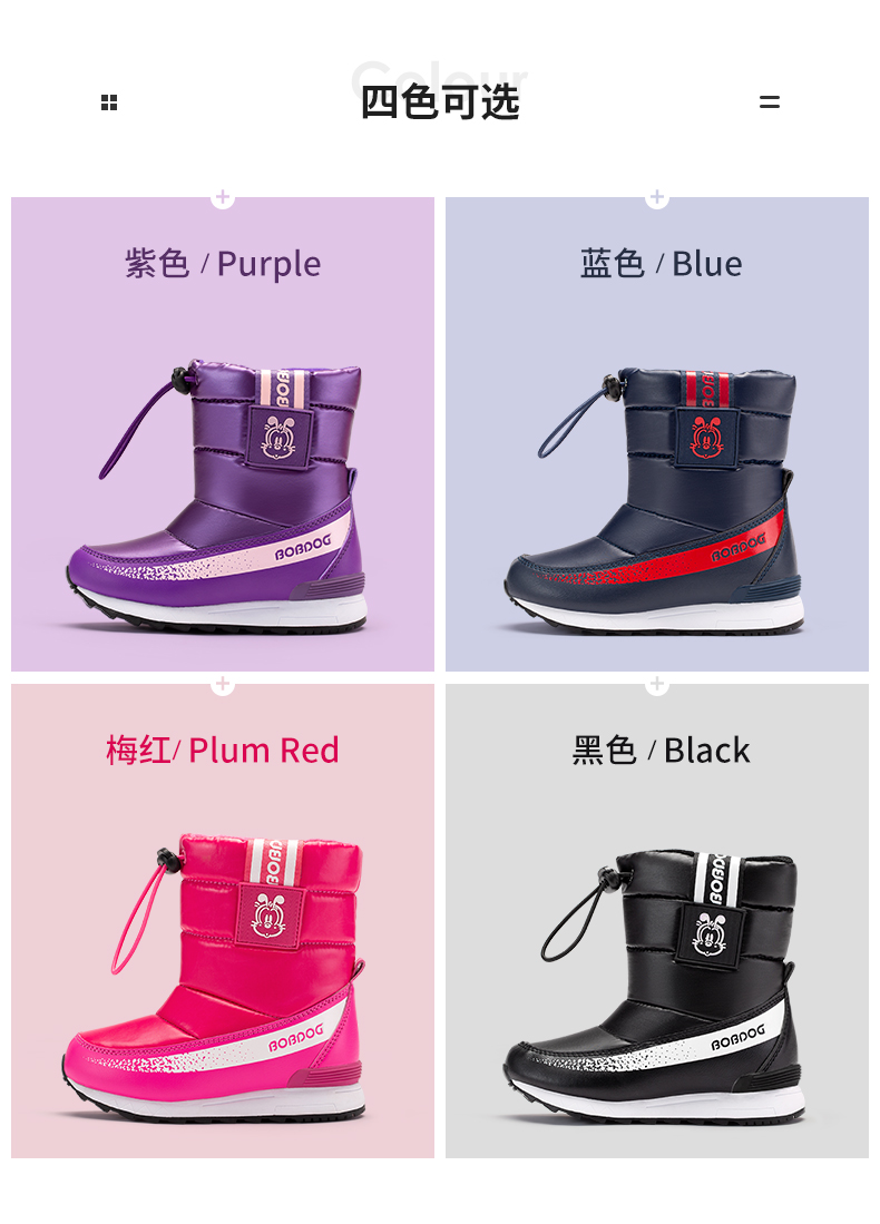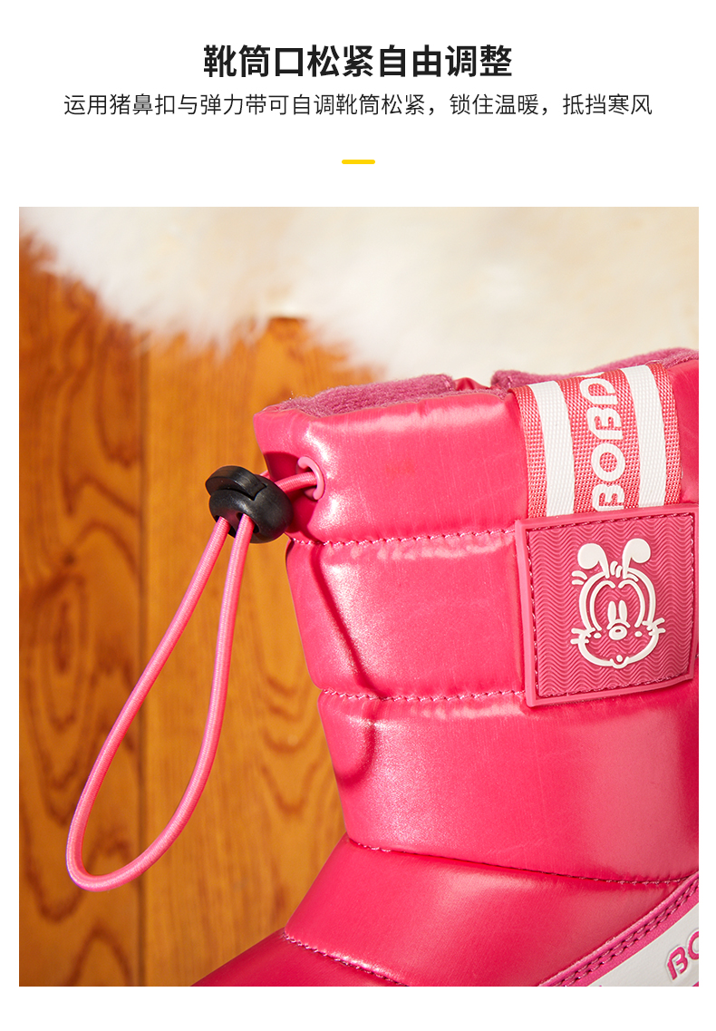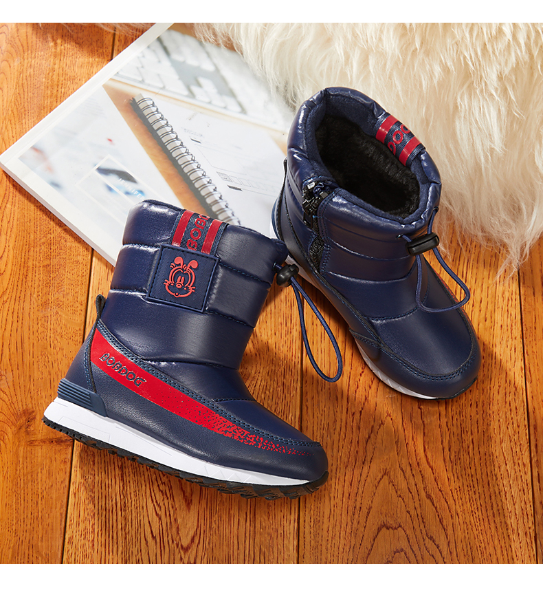 巴布豆house儿童雪地靴女童冬季加绒加厚防水男童棉鞋防滑保暖靴