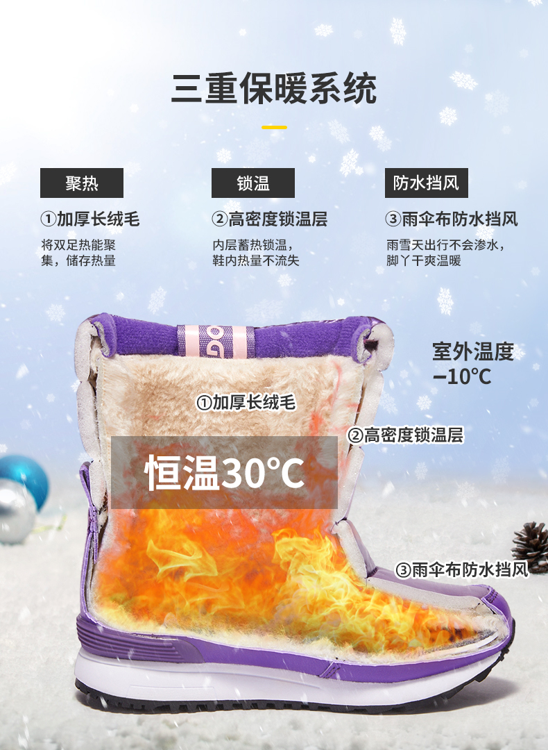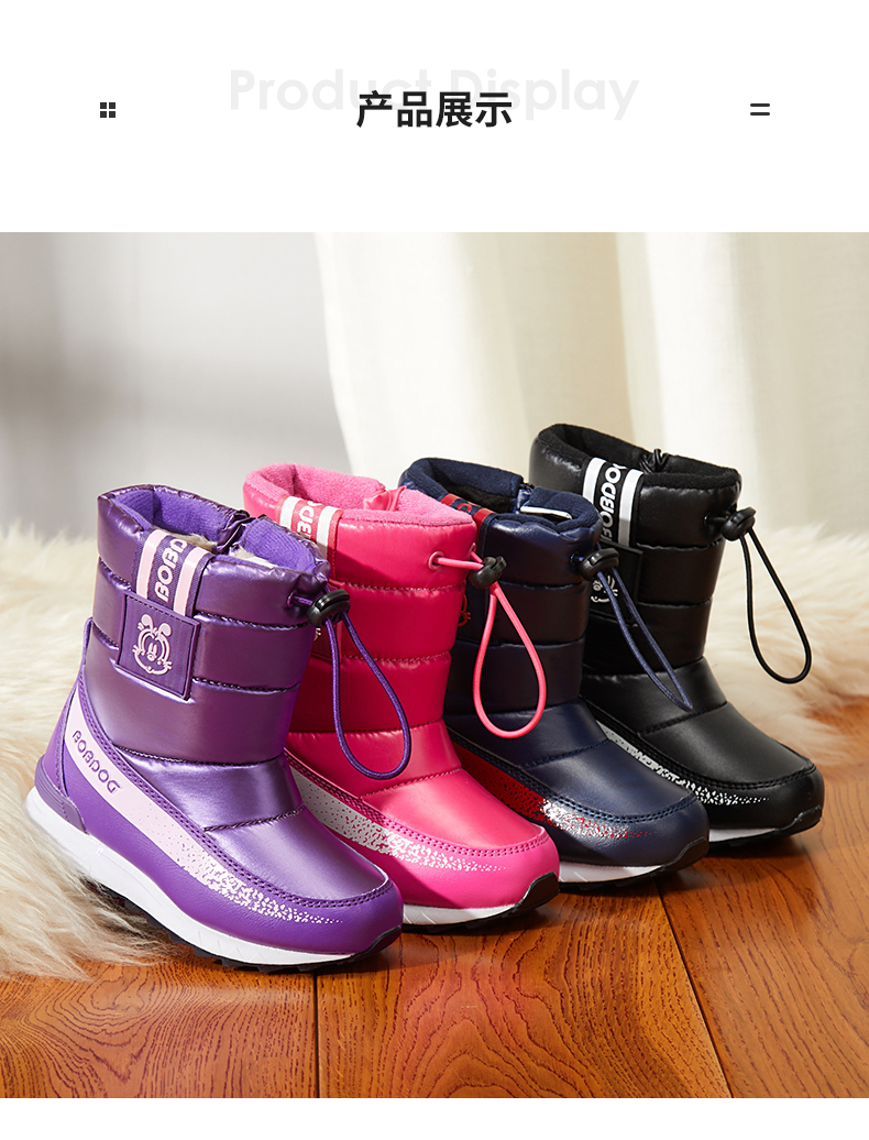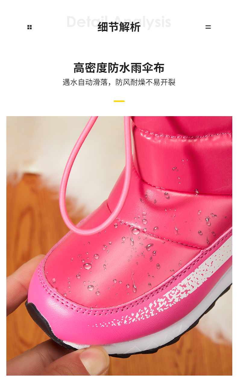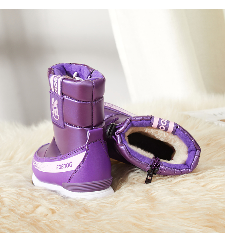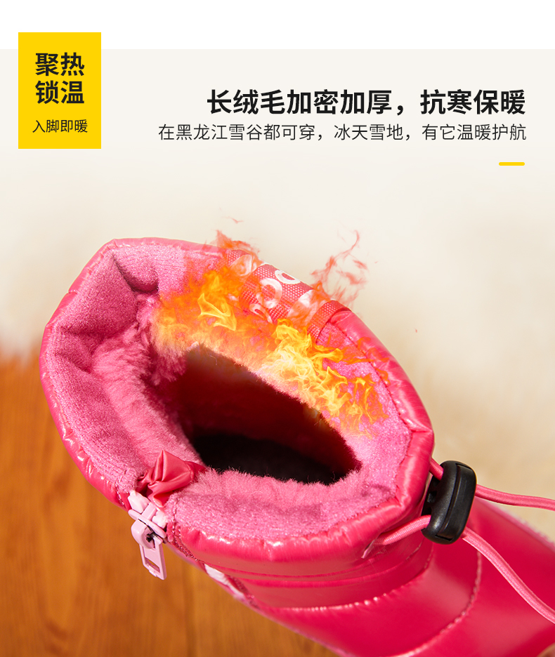巴布豆house儿童雪地靴女童冬季加绒加厚防水男童棉鞋防滑保暖靴