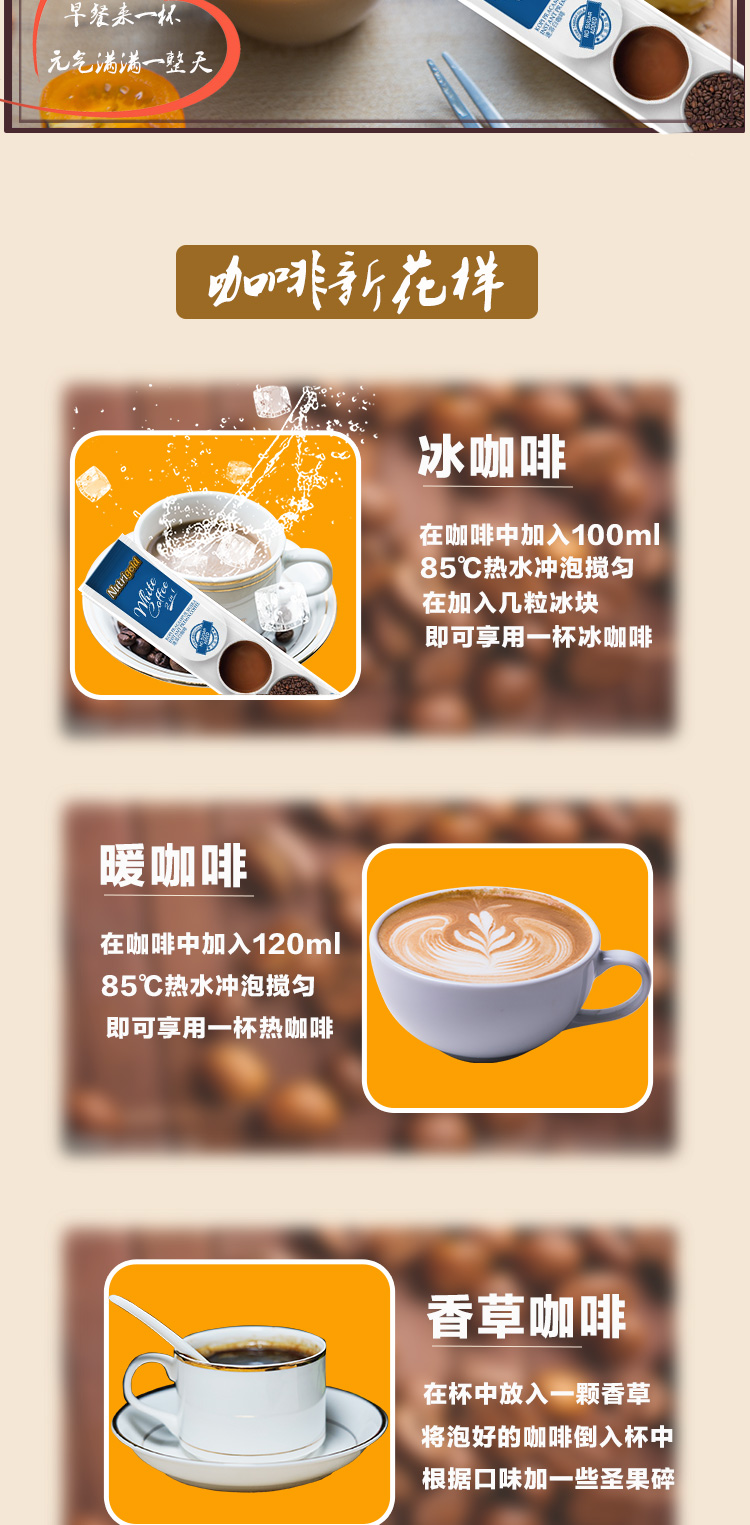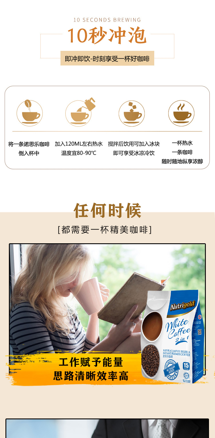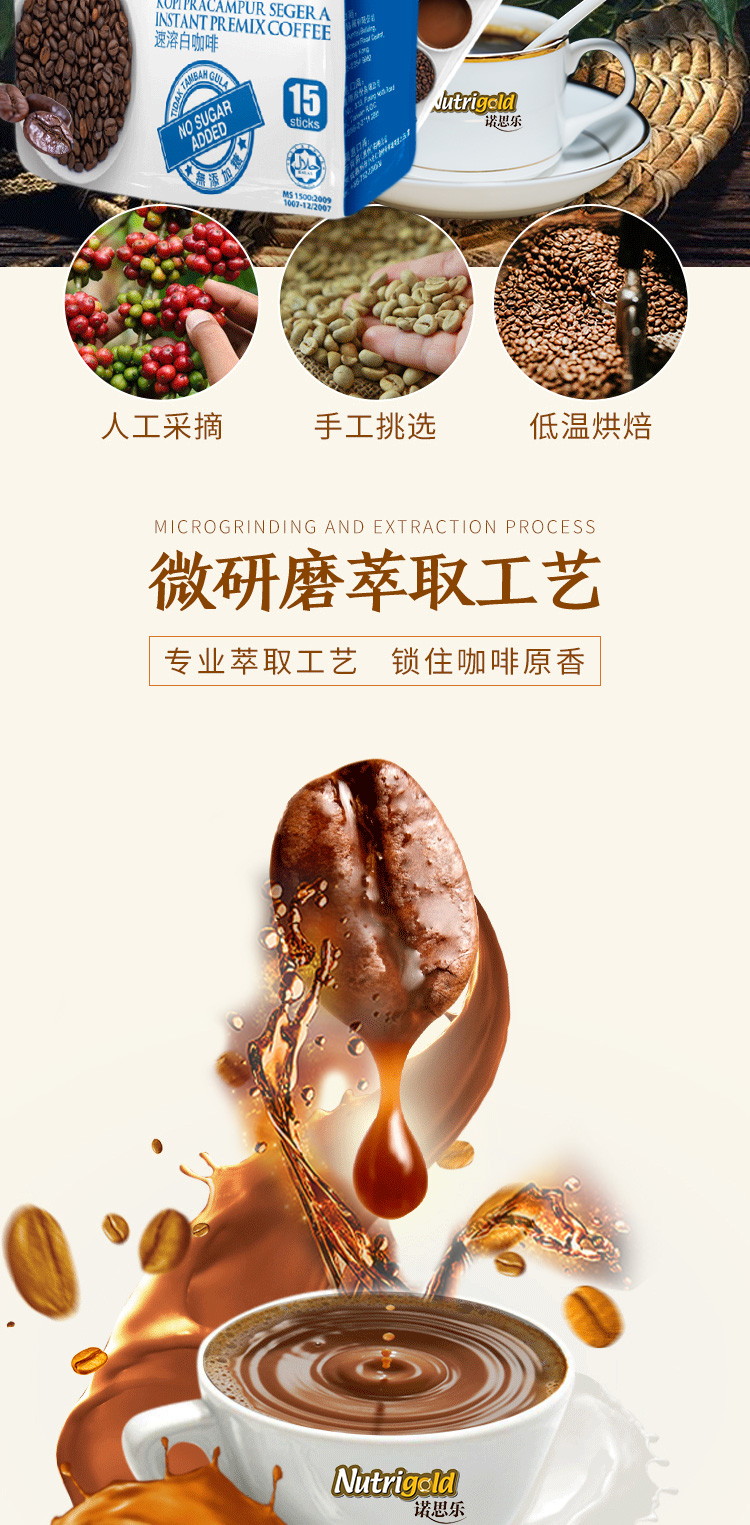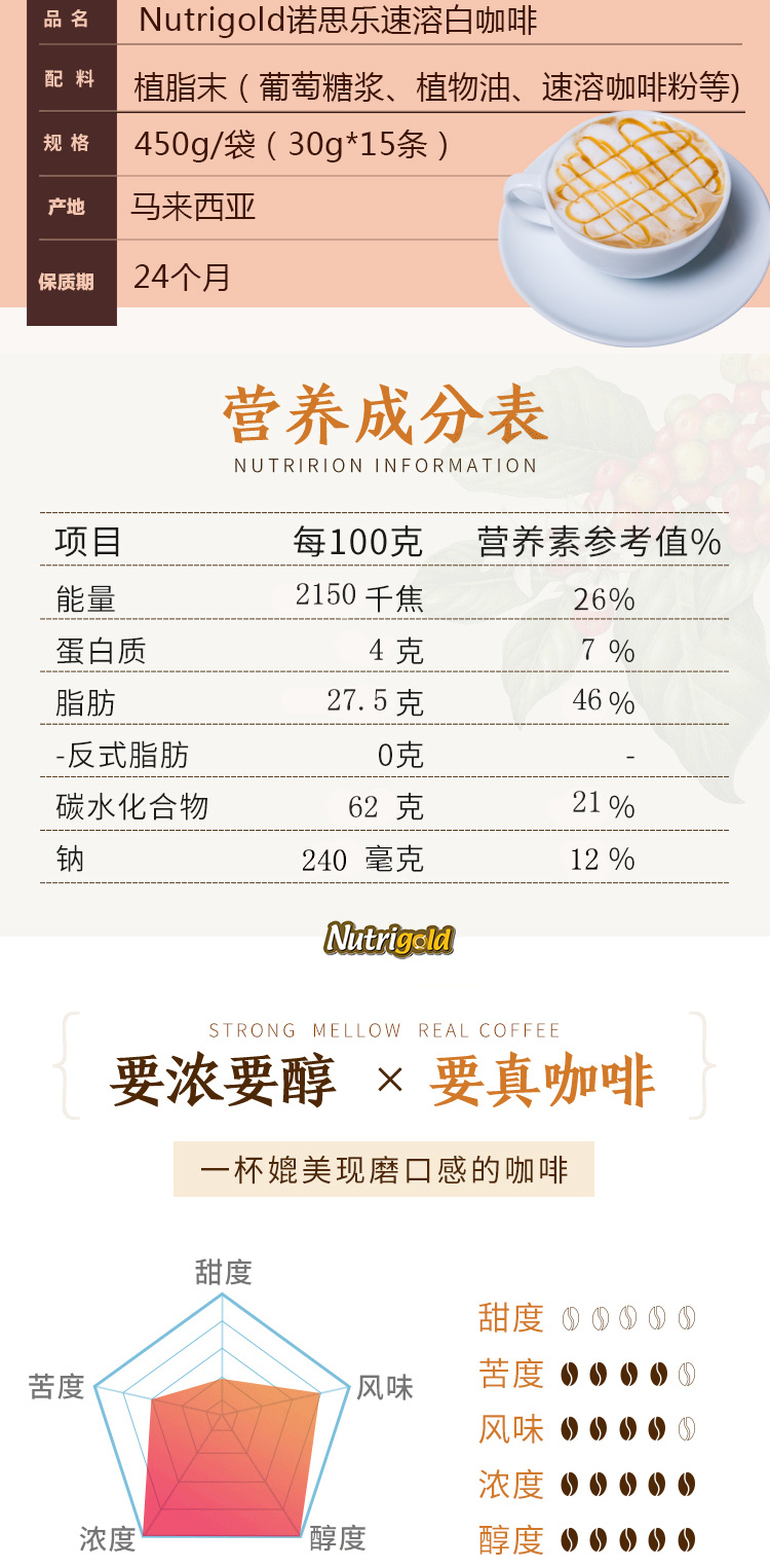 速溶咖啡进口 Nutrigold诺思乐白咖啡无添加糖口味450g(15条)