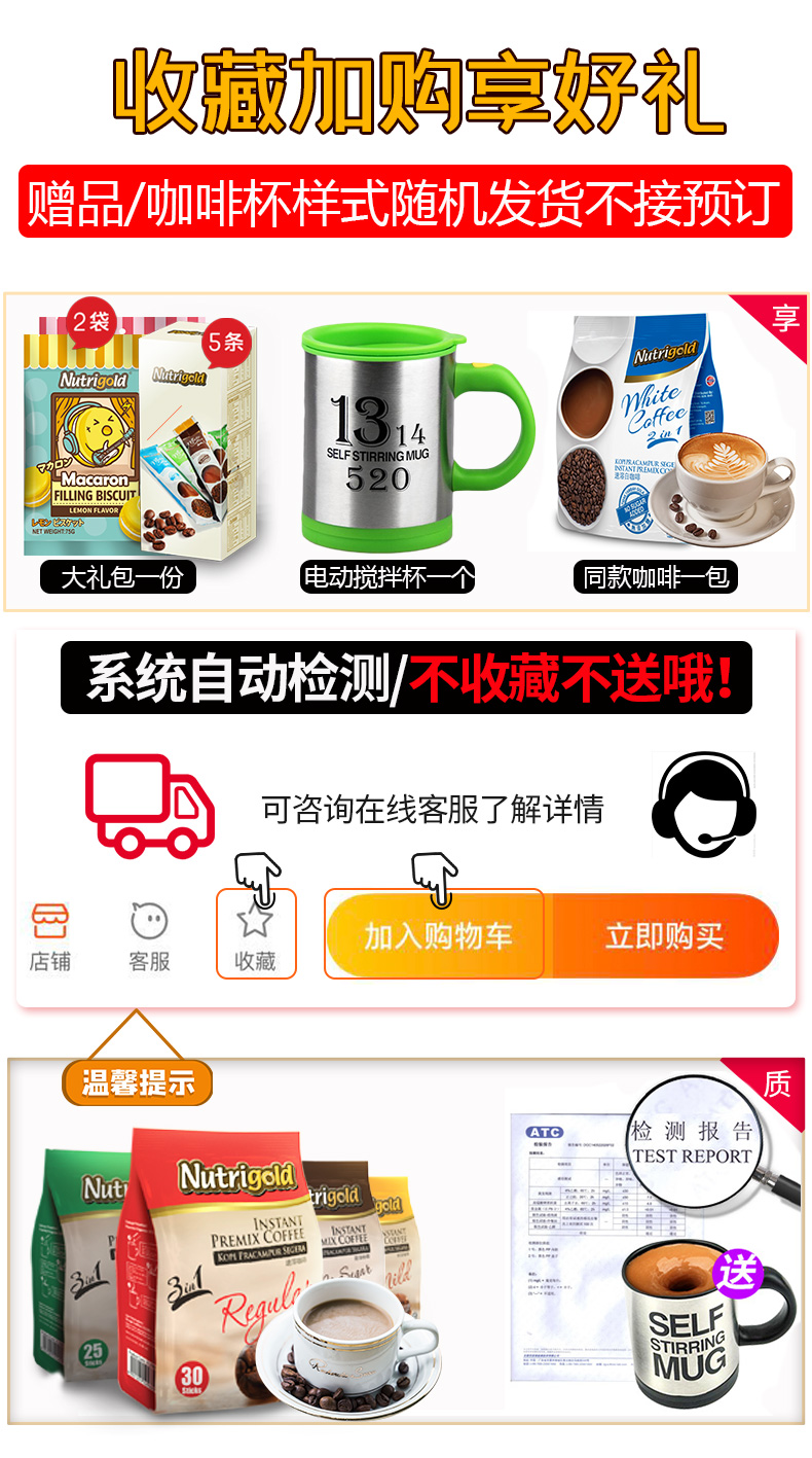 马来西亚原装进口,量很足,咖啡味道很浓,口感很醇厚,无糖的低热量,有效减脂,苦苦的味道,喝着喝着就爱上了!特别喜欢冰着喝,太爽了!