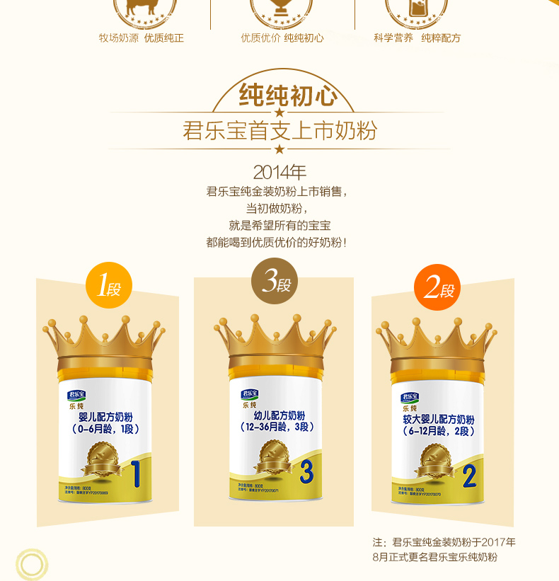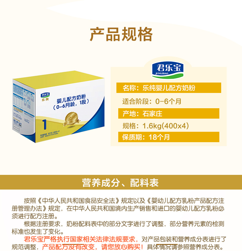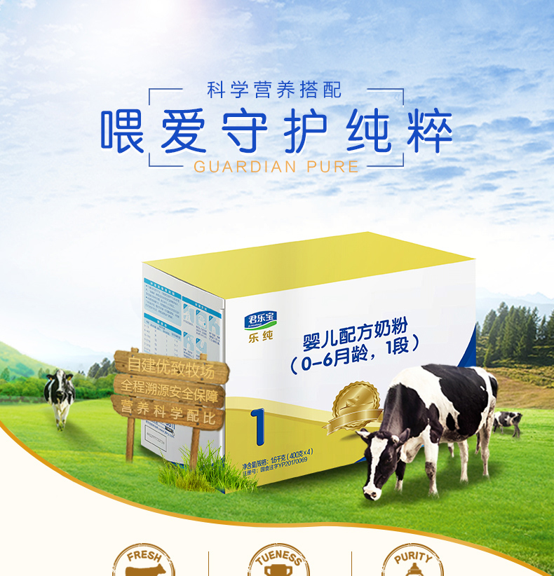 咨询更优惠】君乐宝奶粉1段乐纯四联包新生婴儿奶粉一段盒装1600g