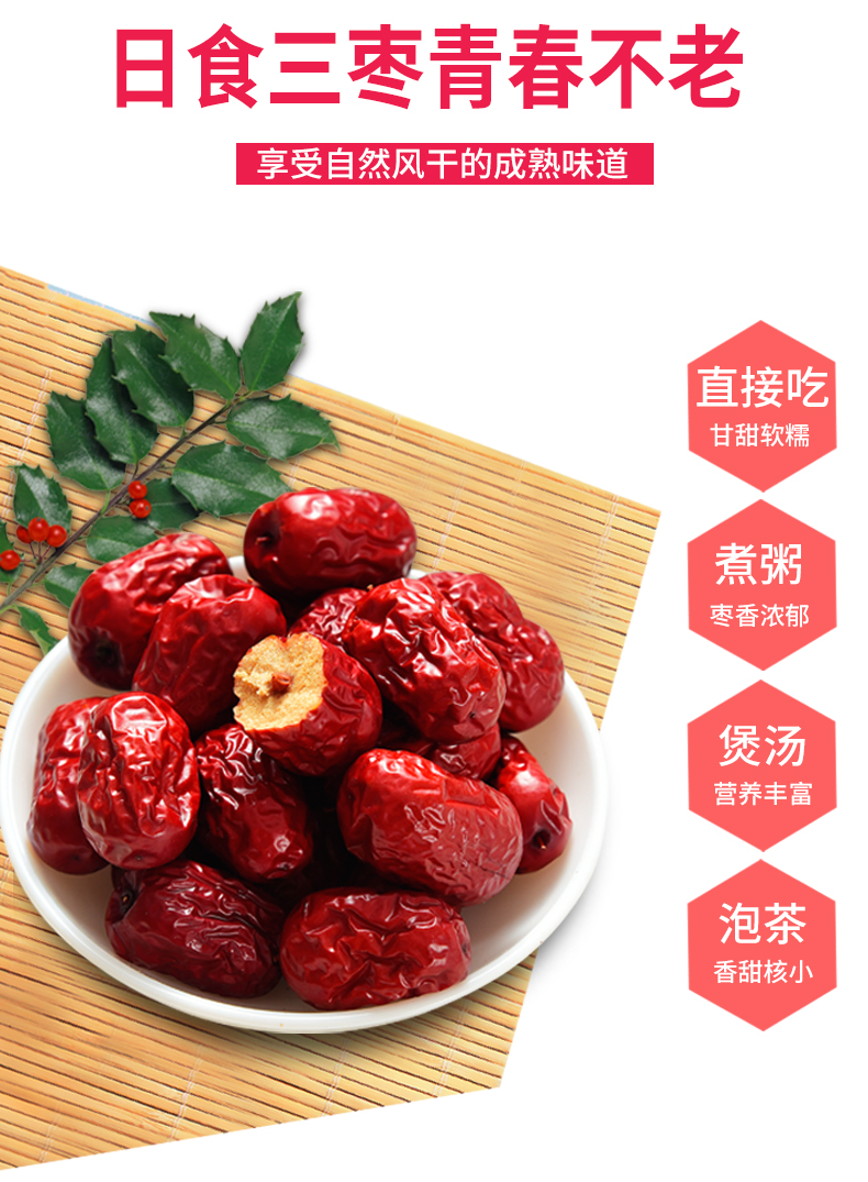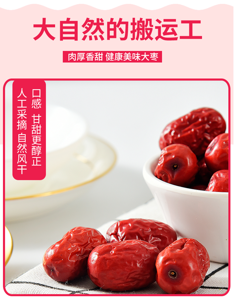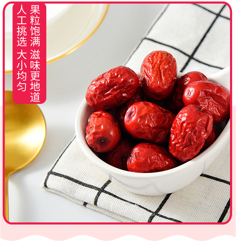 新疆的本色美味,超高好评!严苛挑选,颗颗精选,饱满圆润,肉核狭长,血统纯正,色泽纯正,枣香诱惑,表皮细腻有弹性,皱皮少,无枣疤,非常好吃。【赠送运费险】