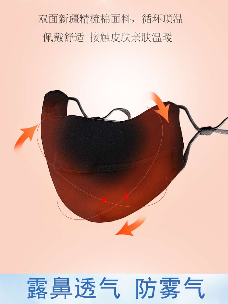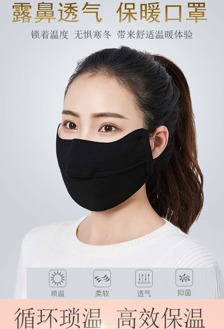 冬季纯棉保暖开口卓透气防哈气加厚口罩女防寒口造罩加大男露鼻