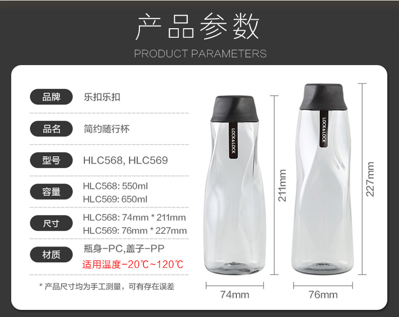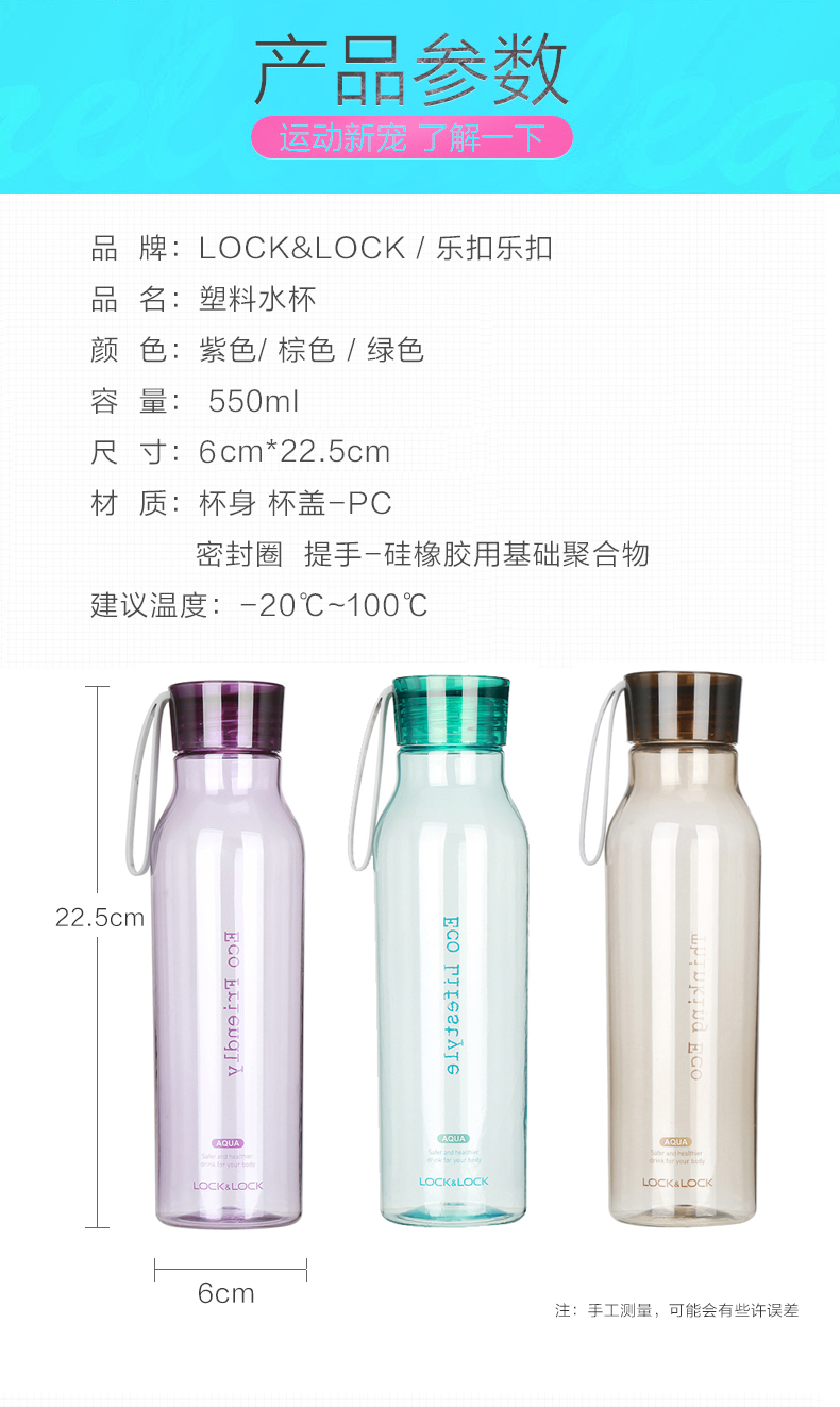 乐扣乐扣水杯塑料运动水壶密封防漏便携随手杯学生夏季杯子
