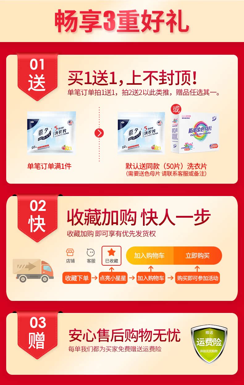 【买二送一!共发150片!】一片能洗一桶衣服,牡丹香型!不是无味哦!每盒50片,低泡无磷洗衣片,无荧光剂,强力去污,深层洁净,植物提取精华,温和不伤手~