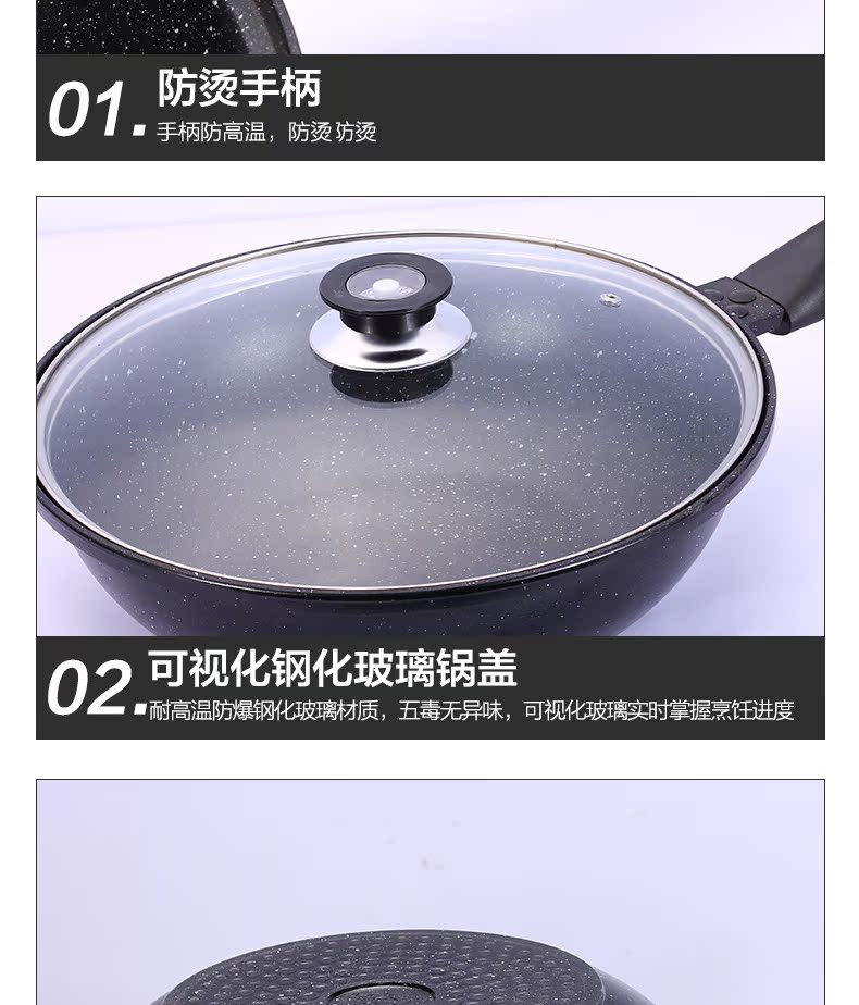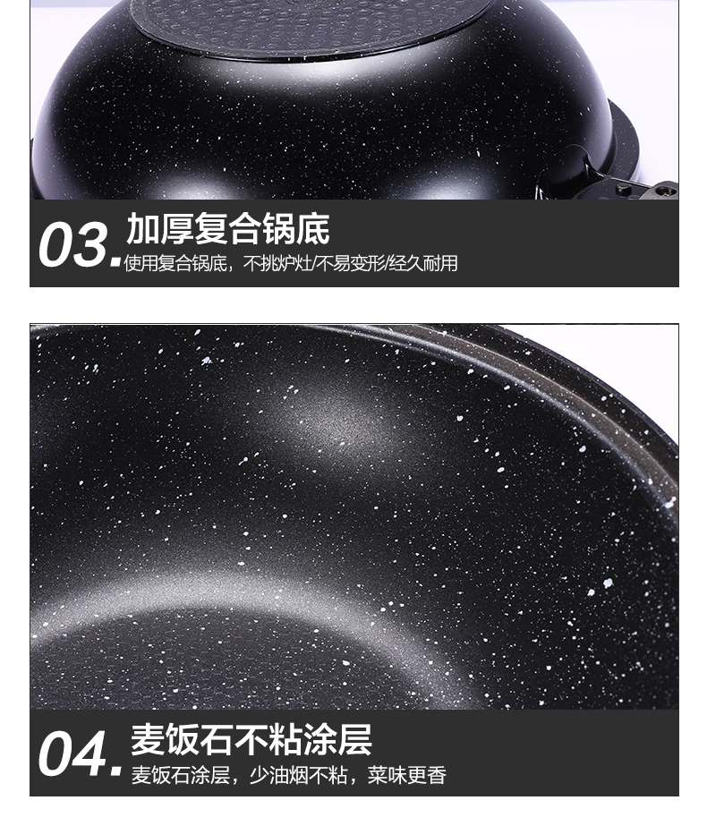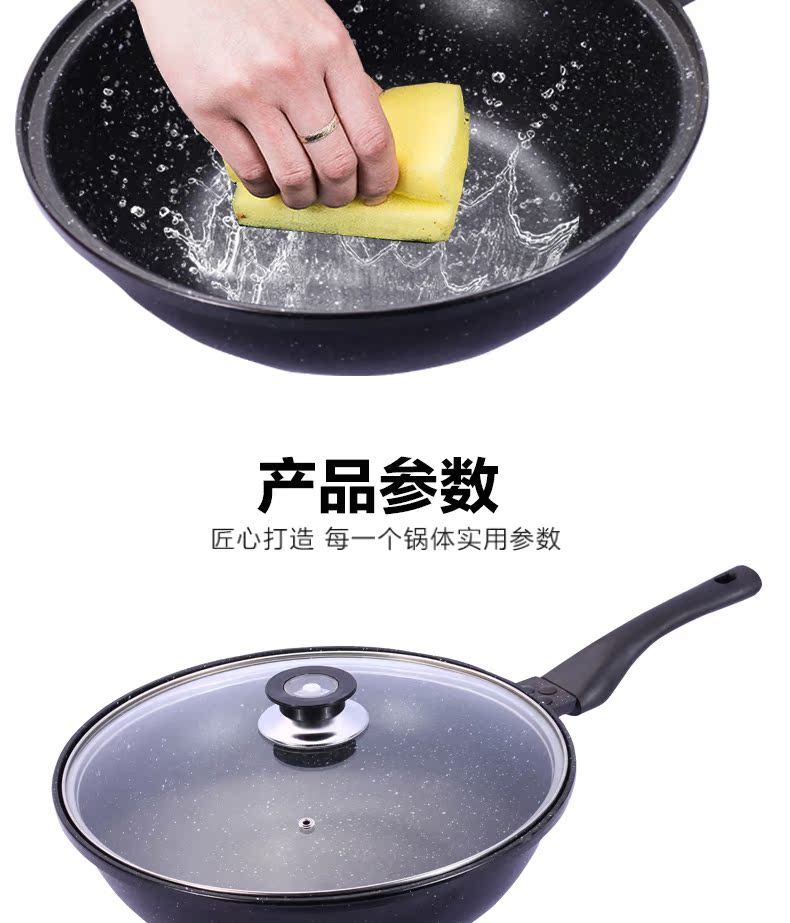 麦饭石涂层不粘锅,电磁炉燃气通用,防刮耐磨,持久耐用,易于清洁,一抹即干净,才是真正的不沾锅!传热均匀,匠心打造,居家好帮手!