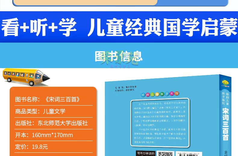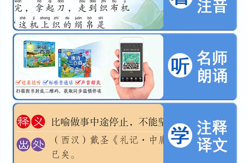 宋词三百首注音正版 国学启蒙认知每天一首古诗经楚辞诗集纳兰词 3-4-5-6岁儿童开发大脑智力的读物 唐诗宋词元曲正版全集三百首书