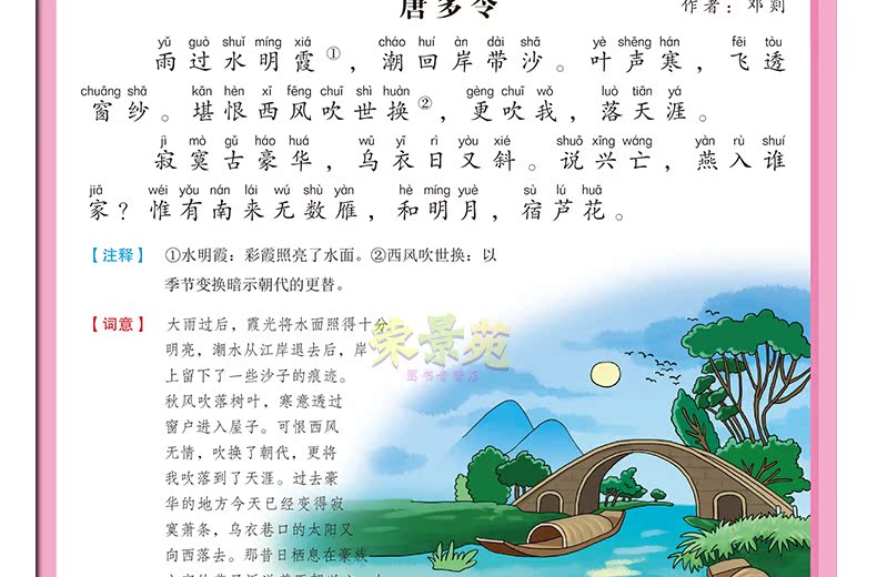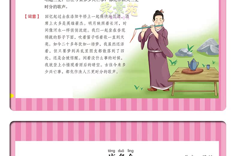 根据文章配上精美的手绘彩图,增加了主人公的立体形象,让阅读不再枯燥无味。在古代文学的阆苑里,宋词是一座芬芳绚丽的园圃,以姹紫嫣红、千姿百态的风神,与唐诗争奇,与元曲斗艳,代表一代文学之盛。