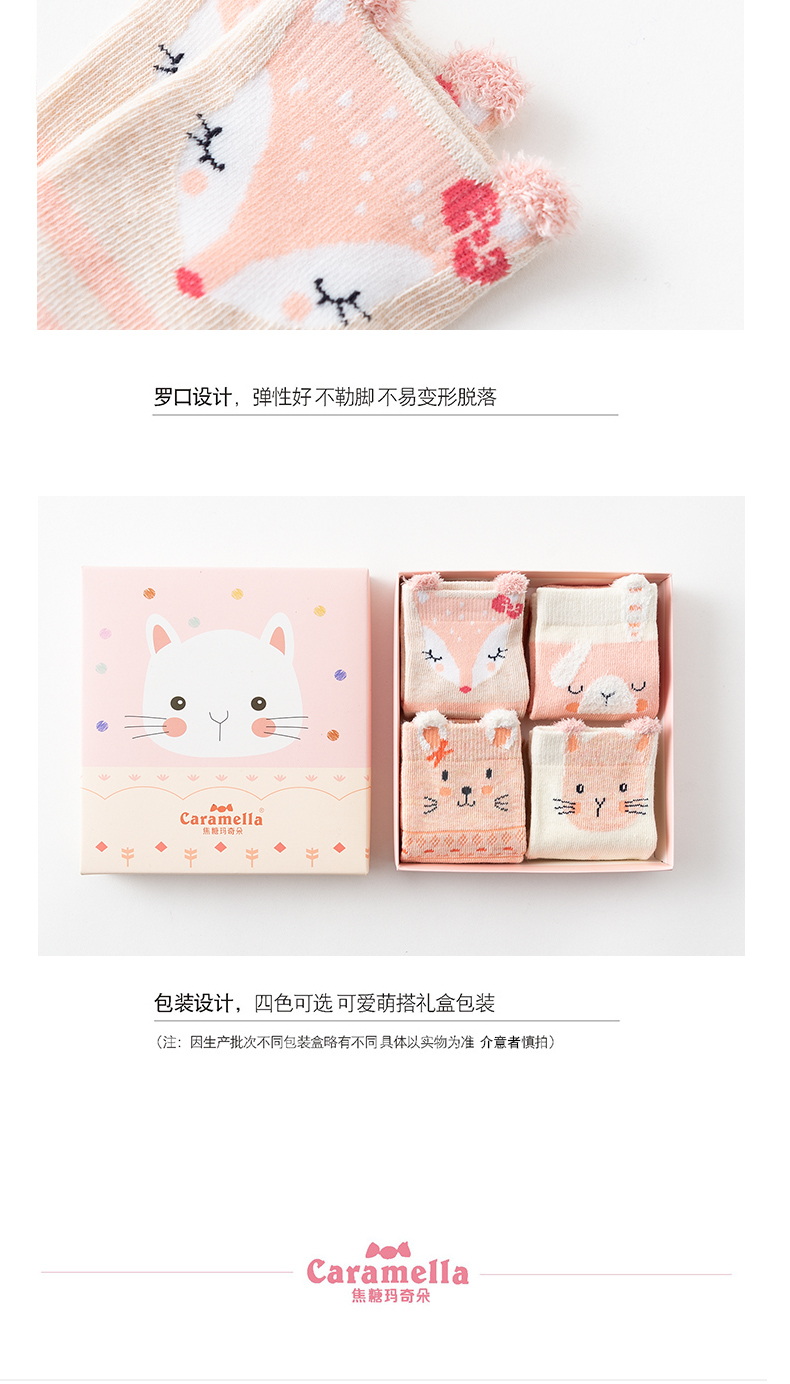 caramella线下大牌童袜,秋冬新品,纯棉四双礼盒袜,零甲醛棉袜,舒适透气,亲肤柔软,呵护宝宝的每一步!买到就是赚到!【赠运费险】
