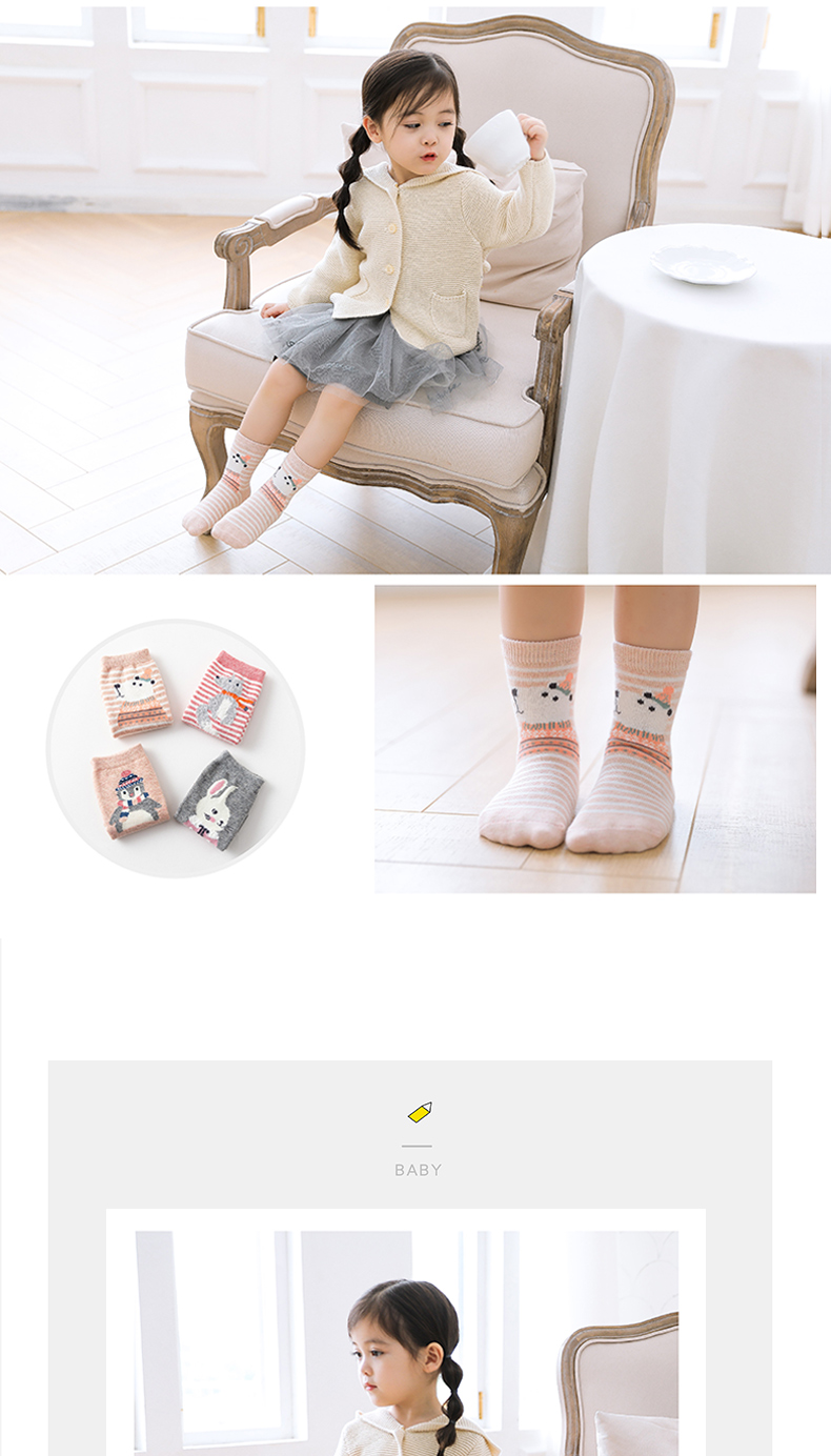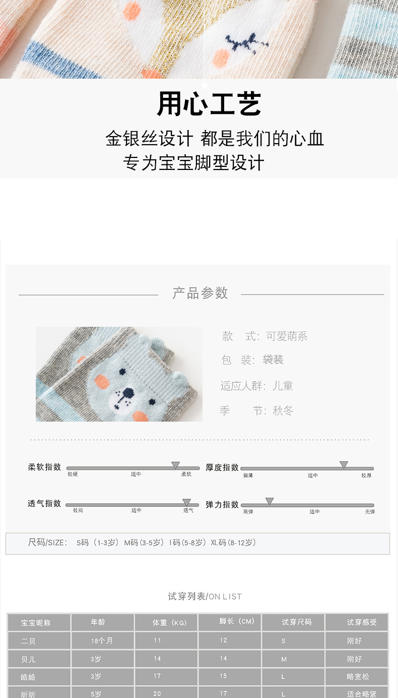 caramella 宝宝袜子秋冬男女童中筒纯棉袜儿童袜子地板袜婴儿袜子