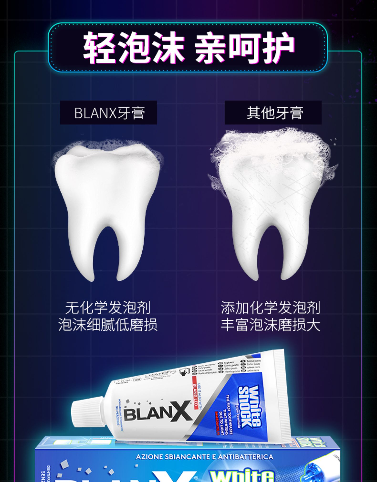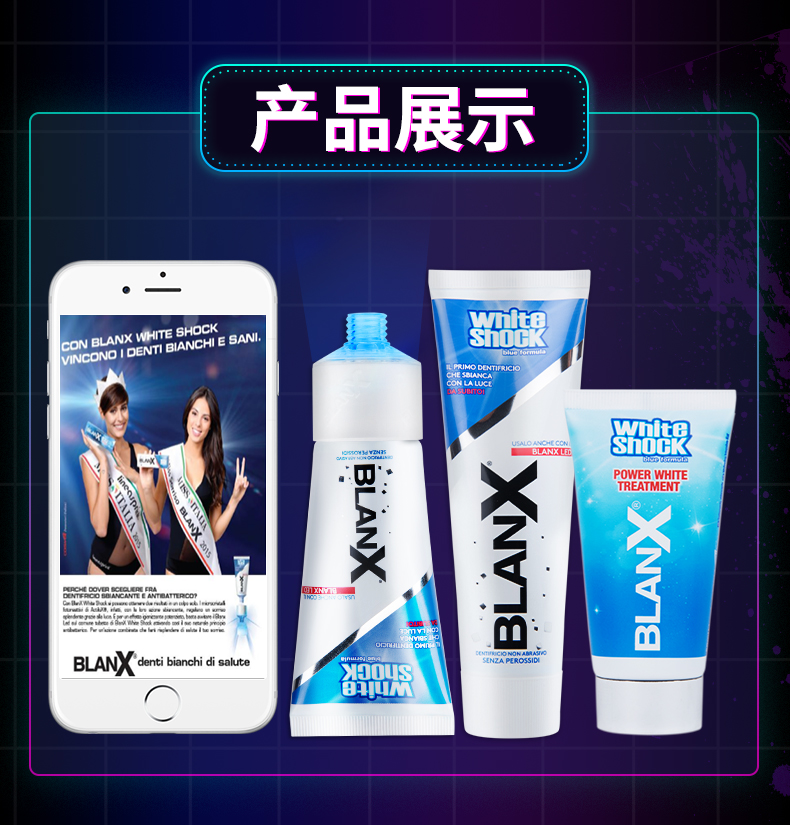 blanx意大利进口美白牙膏,专业护理,美白牙齿,保护牙龈,呵护口腔不惧敏感,清新口气,保护口腔健康!