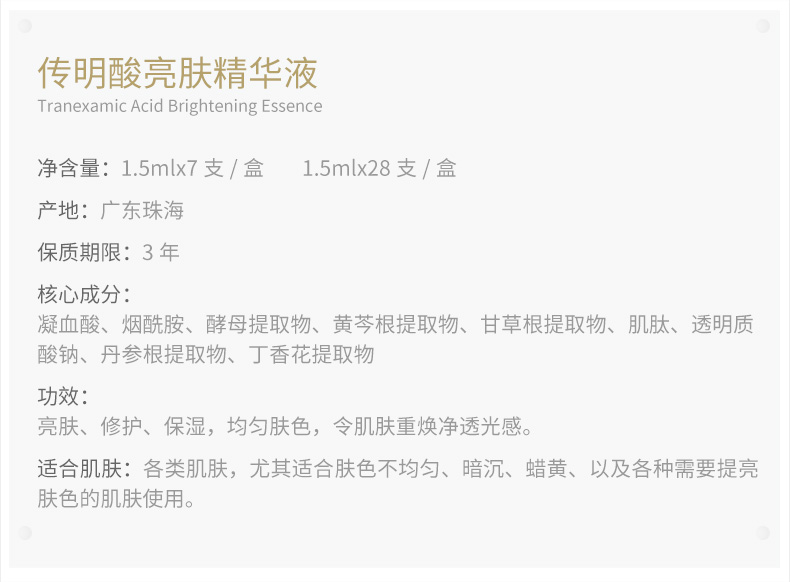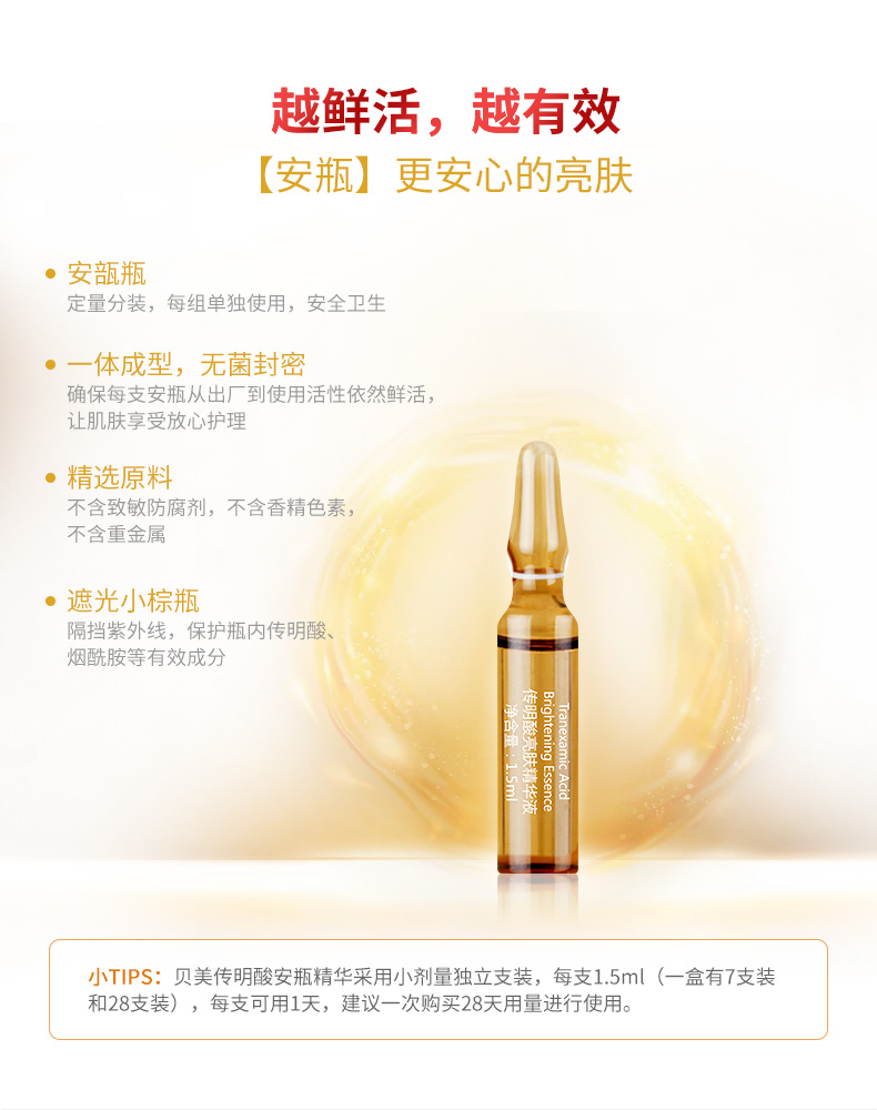 贝美传明酸安瓶精华液烟酰胺提亮肤色收缩毛孔补水保湿熬夜玻尿酸