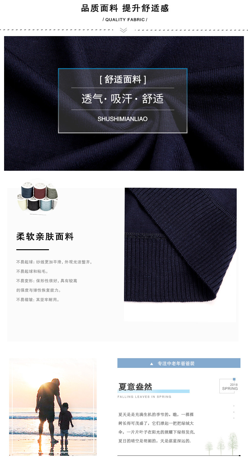 北极绒舒适休闲T恤,亲肤面料,时尚休闲,透气吸汗,利落剪裁。休闲翻领设计,将老爸的气质展现出来,严谨的的走线工艺,增加了衣服的耐用性,快来抢购吧!【赠运险费】