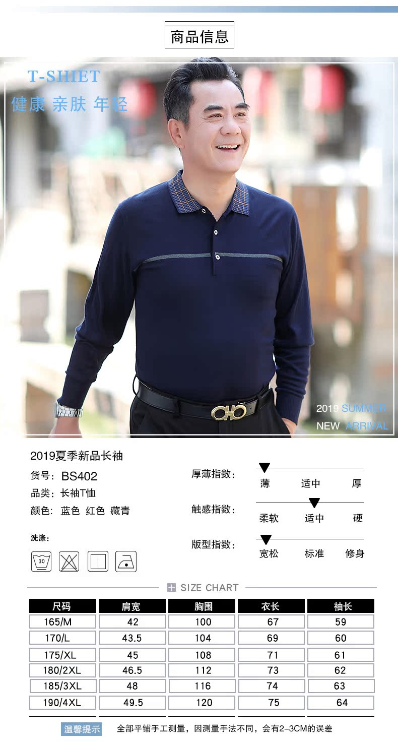 北极绒爸爸长袖t恤男夏装40-50岁中年人冰丝中老年男士秋季上衣服