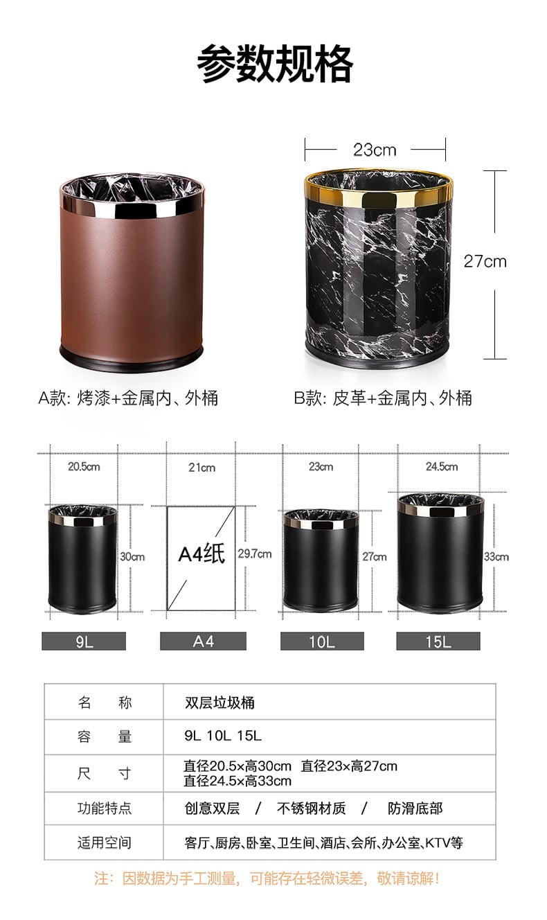 抖音网红垃圾桶,不锈钢+烤漆工艺,升级版是双层设计,水洗不生锈,结实耐用,防滑底座,垃圾袋不外露,绿色环保,美观优雅,简约时尚生活!【赠送运费险】