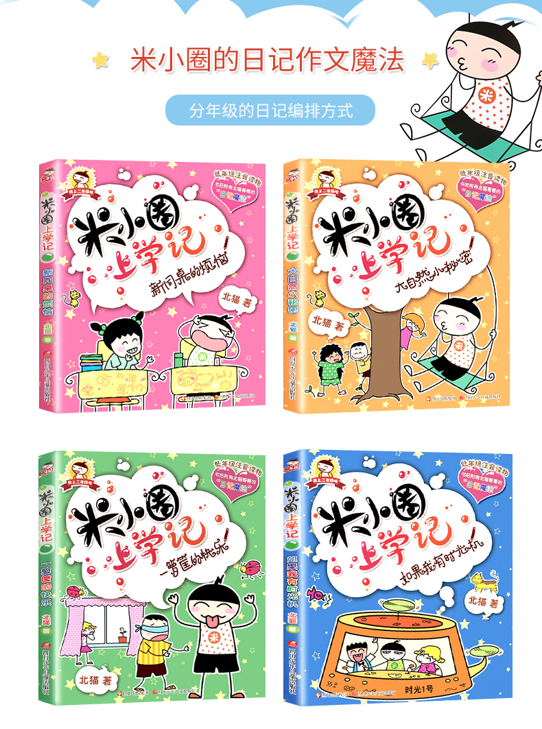 经典儿童漫画书,米小圈上学记2年级,全4册,内容有趣,全彩印刷,插图精美。轻松提高宝宝作文水平,养成好习惯,宝妈必备睡前故事书,小学生必读课外读物。