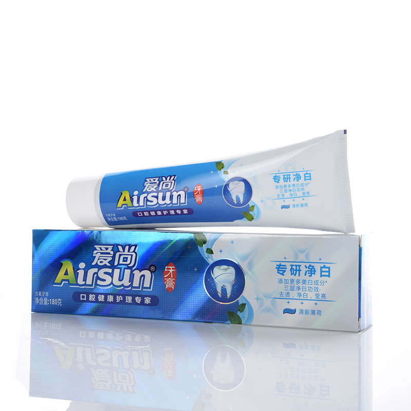 【三支组合装共540克只需9.9】airsun爱尚牙膏缓解牙龈萎缩,修复口腔黏膜溃破,牙龈出血,去热清火,清洁口腔,去口臭,去异味,口气清新。