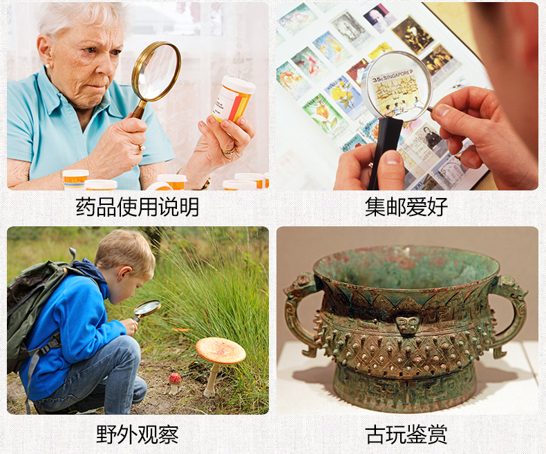 申宏高清手持式放大镜20倍老人阅读10倍100MM带LED灯高倍儿童小学生用光学扩大镜30老年放大镜1000便携式倍60