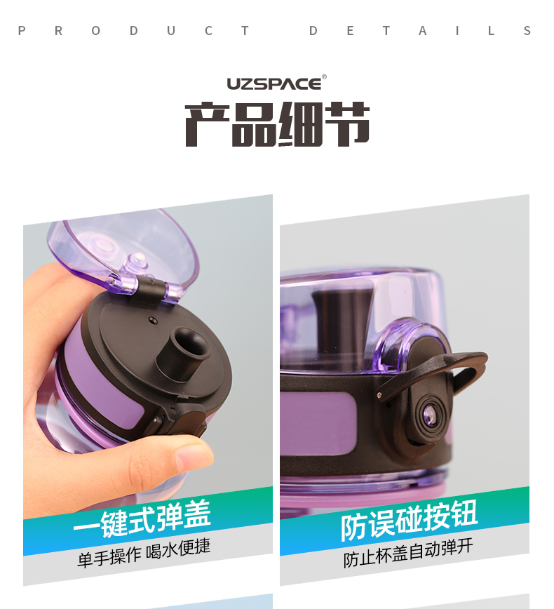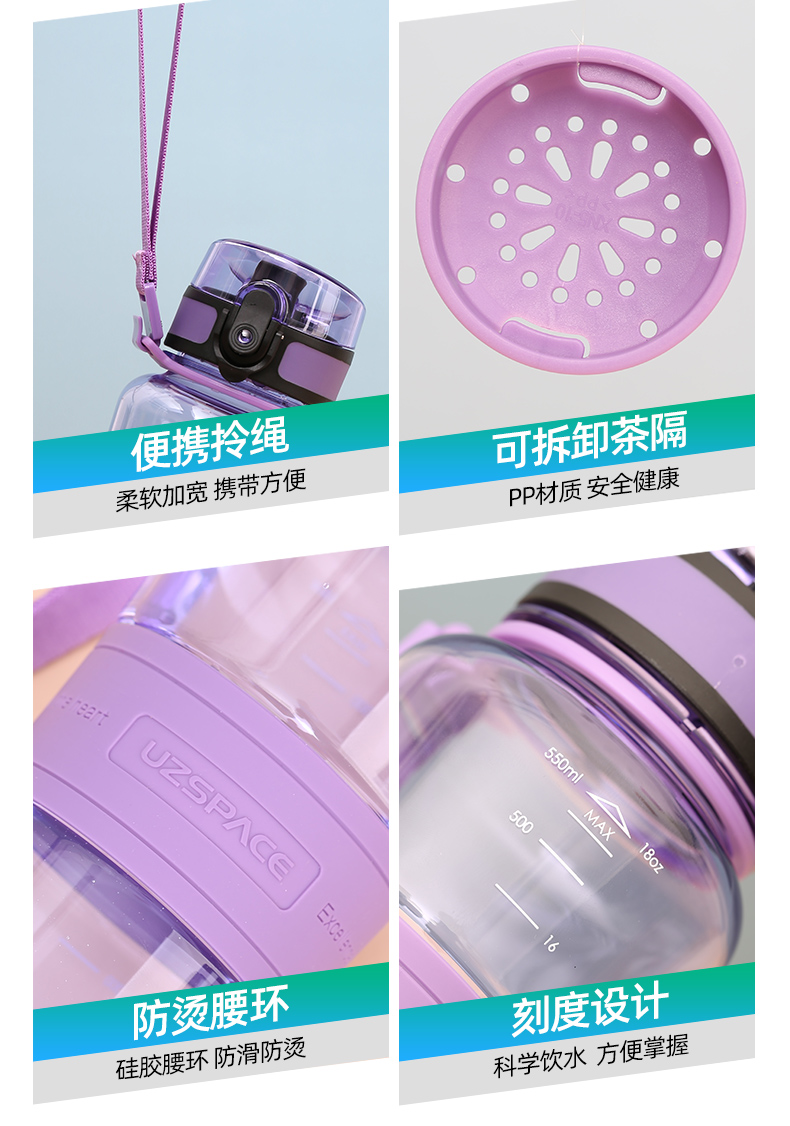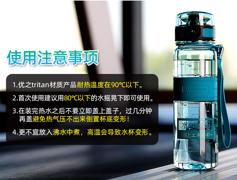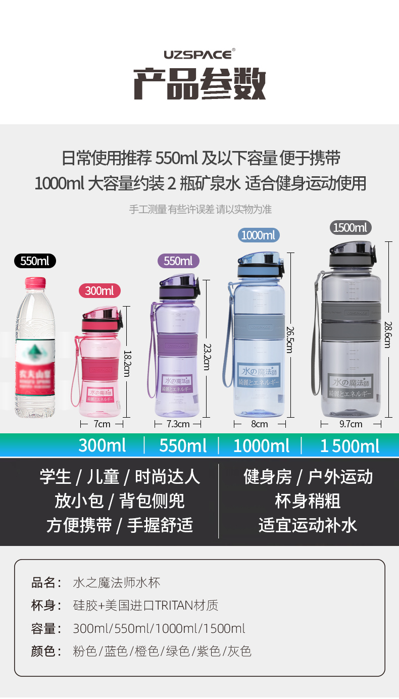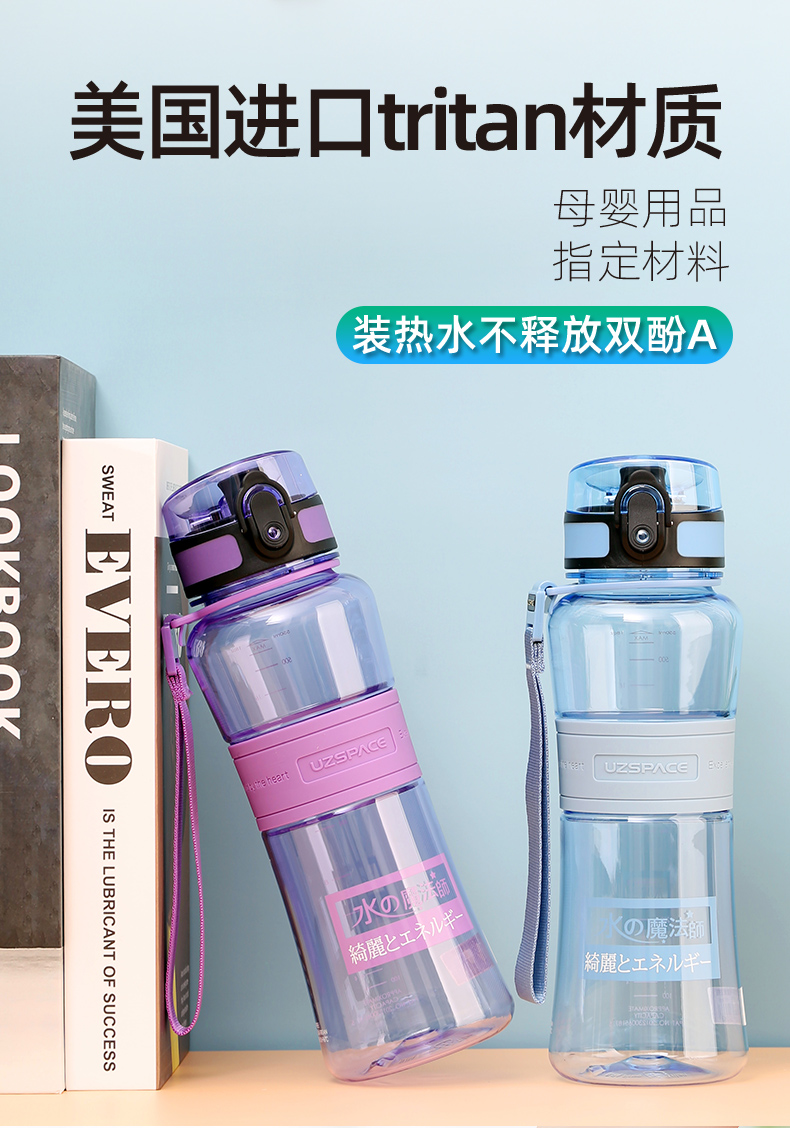 优之负离子户外便携防摔健身水杯子男女塑料运动tritan小学生水壶