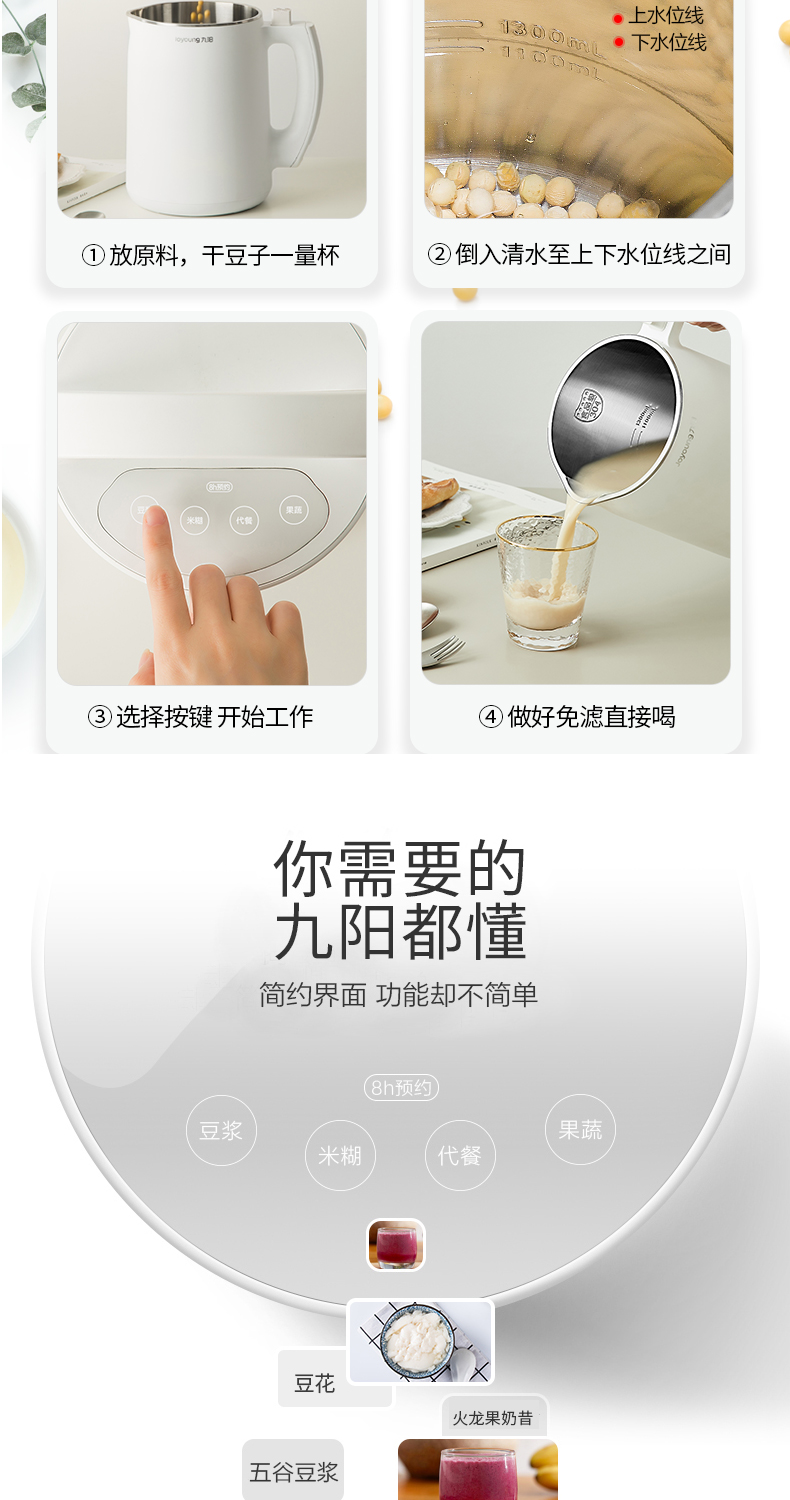 九阳豆浆机家用全自动破壁免过滤煮多功能预约官方旗舰店官网正品
