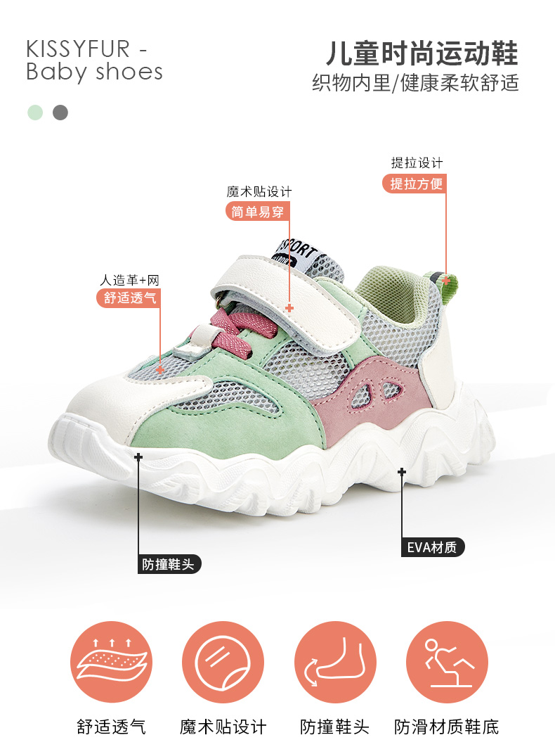 木木屋男女宝宝时尚运动鞋,适合1-3岁的宝宝,网布内里,柔软亲肤,舒适透气,轻质防滑鞋底,让宝宝行走更自在!