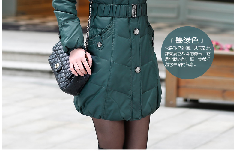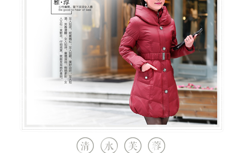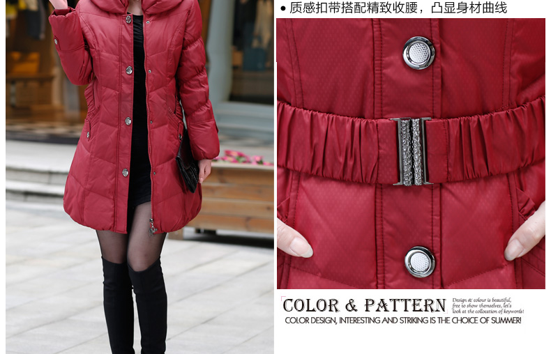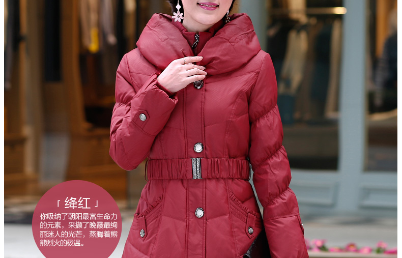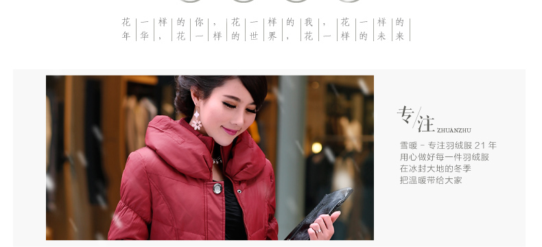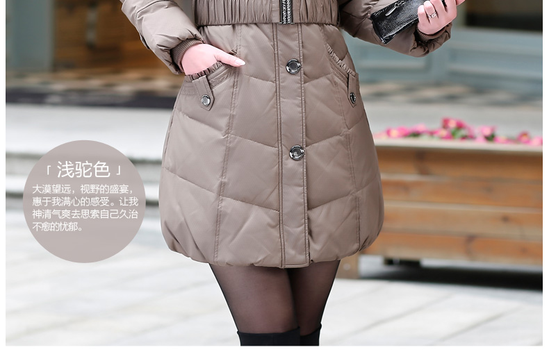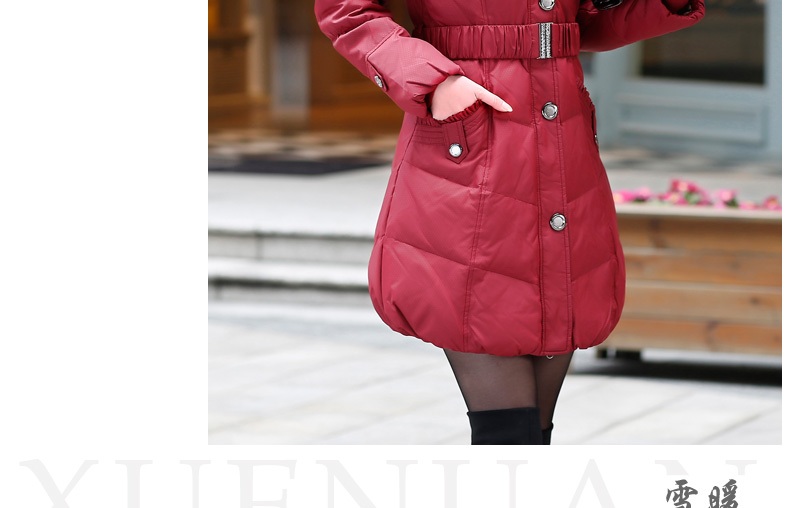 雪暖品牌秋冬新款大码中年羽绒服女中长款修身显瘦收腰妈妈装2120