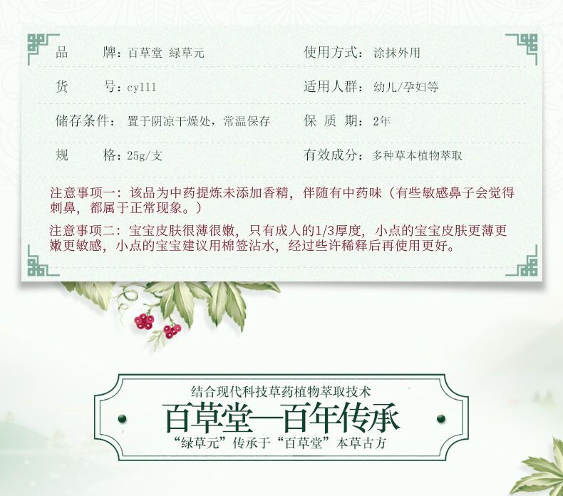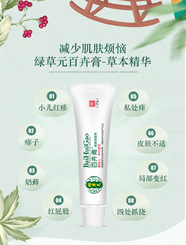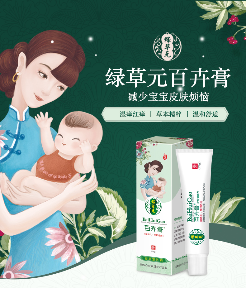 绿草元百卉膏25g百草堂婴儿红P亲宝宝湿痒痱疹子蚊虫叮咬婴宝面霜