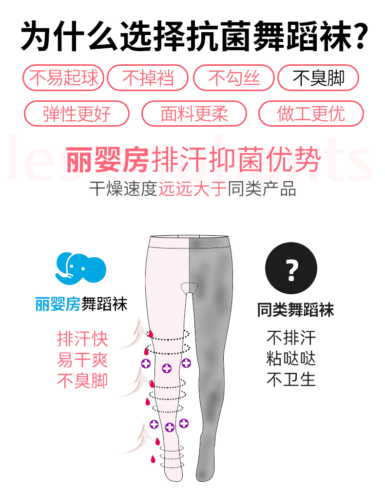 安全无甲醛无异味,柔软亲肤,吸湿排汗,易干抑菌,专业舞蹈袜舒适不束缚,加宽松紧腰,不易勾丝,抑菌99%!【赠运费险】
