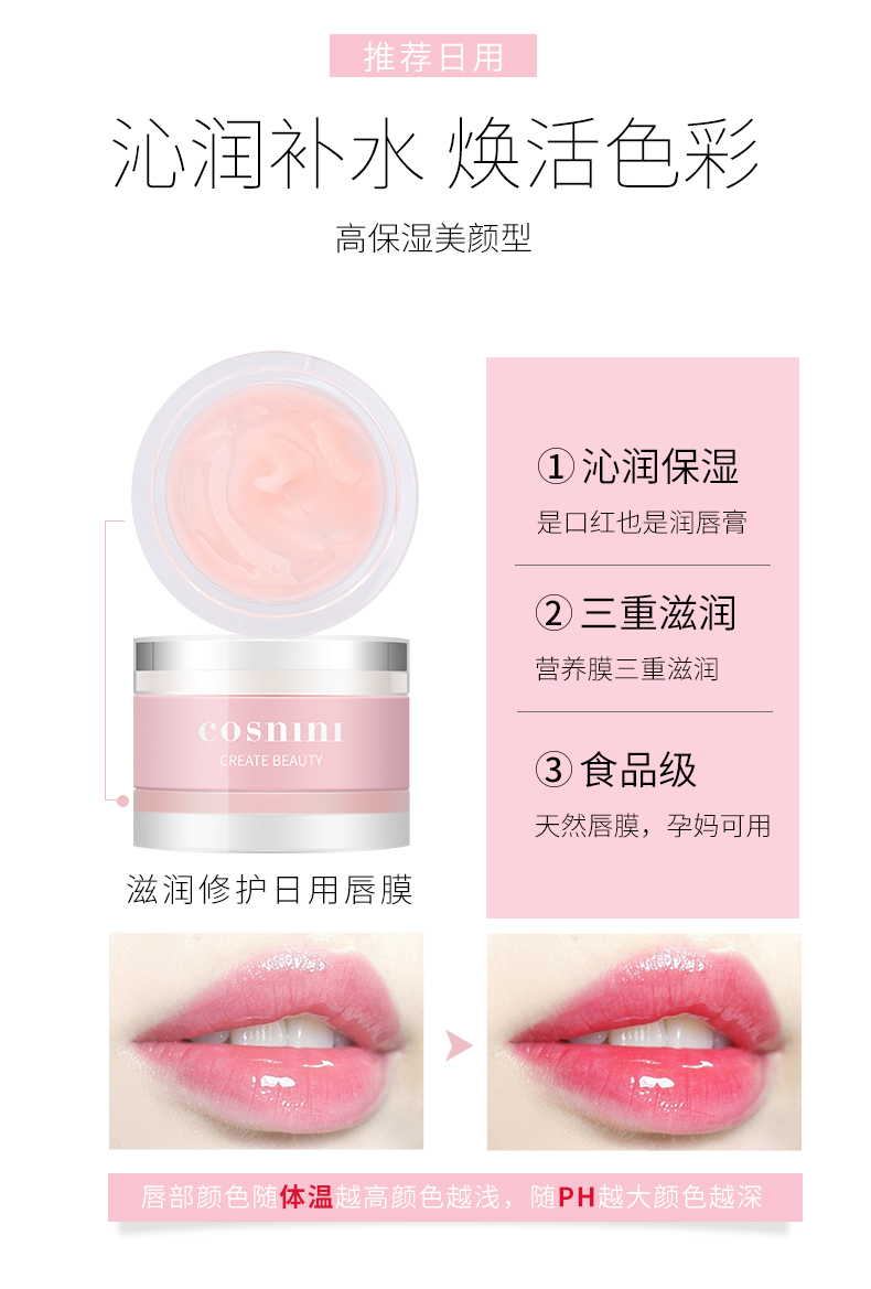 【屈臣氏同款,买一送一,再送2片面膜】4色随心选,食品级安全配方,提取天然蜂蜡、芦荟、维E,孕妇可用,营养膜三重滋润,深层养护。一盒两用,晚上无色滋养,白天变色提亮,让双唇时刻柔润动人!