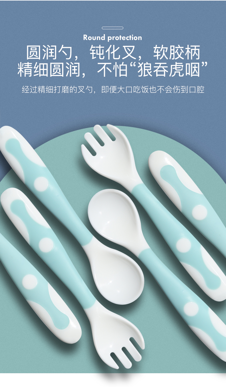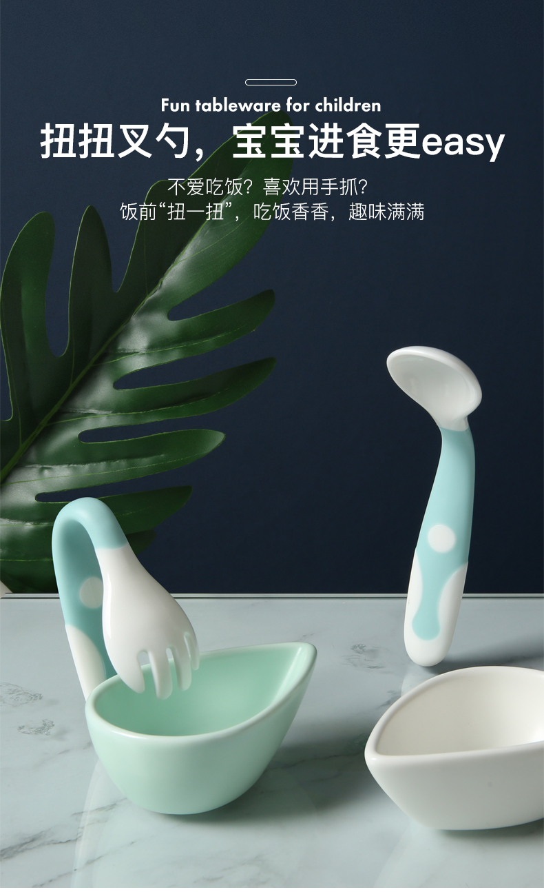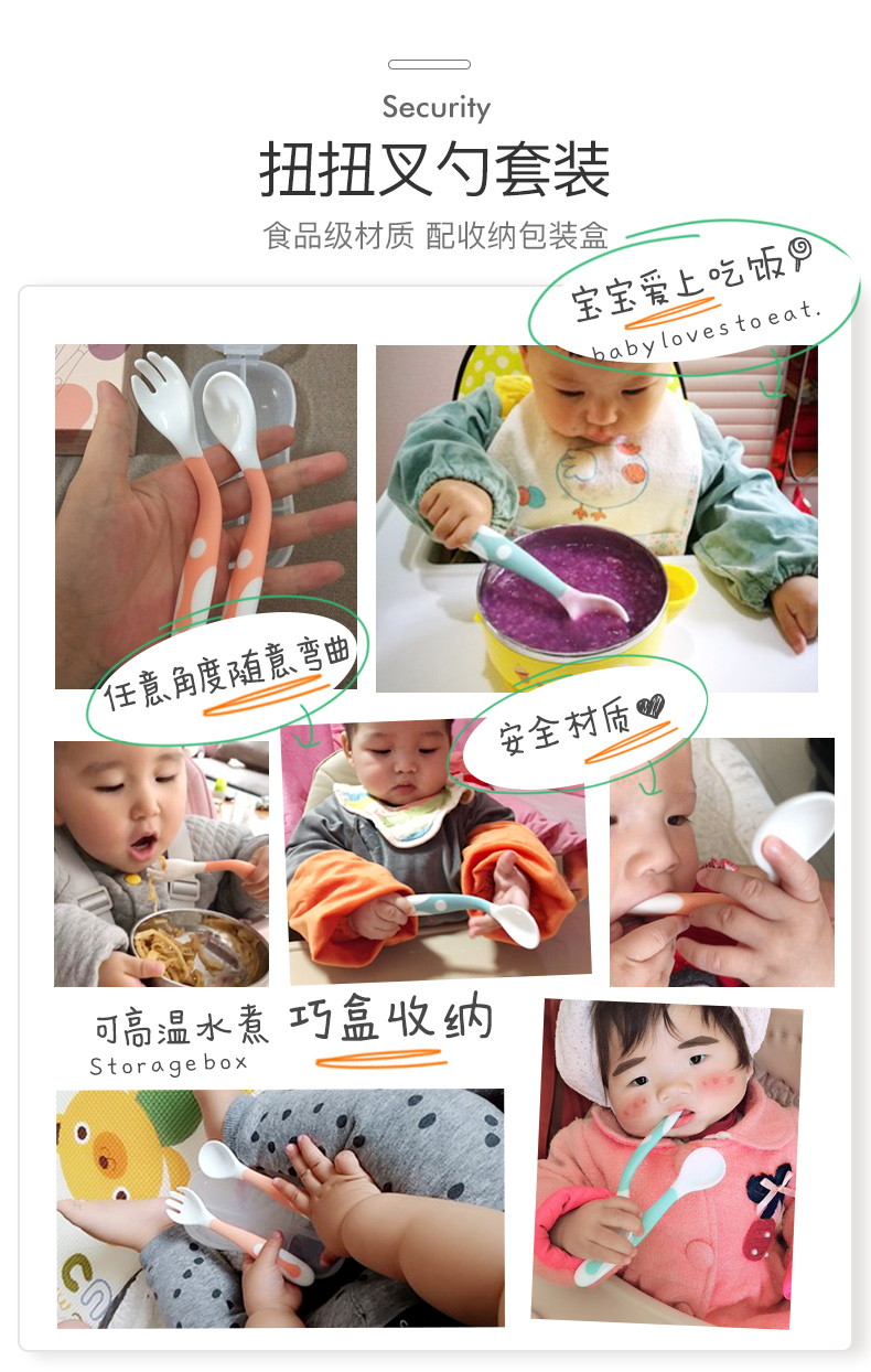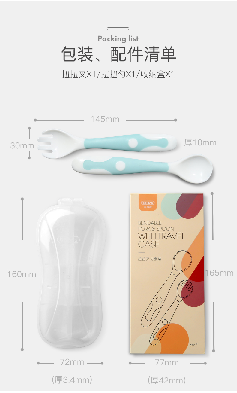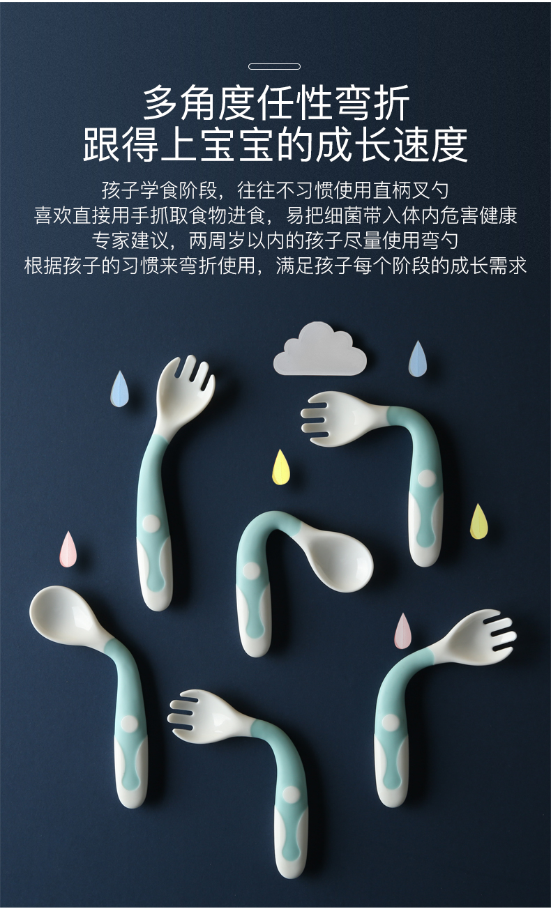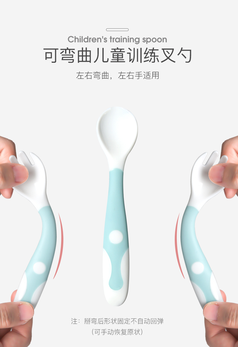 【贝恩】施新生儿童学吃饭训练勺子,优质材质,安全健康,360度弯曲,便携收纳,易抓握,带脚刀叉,防脏放污,细节关爱,远离桌面污染,可掰弯曲,从此让宝宝爱上吃饭。【赠运费险】