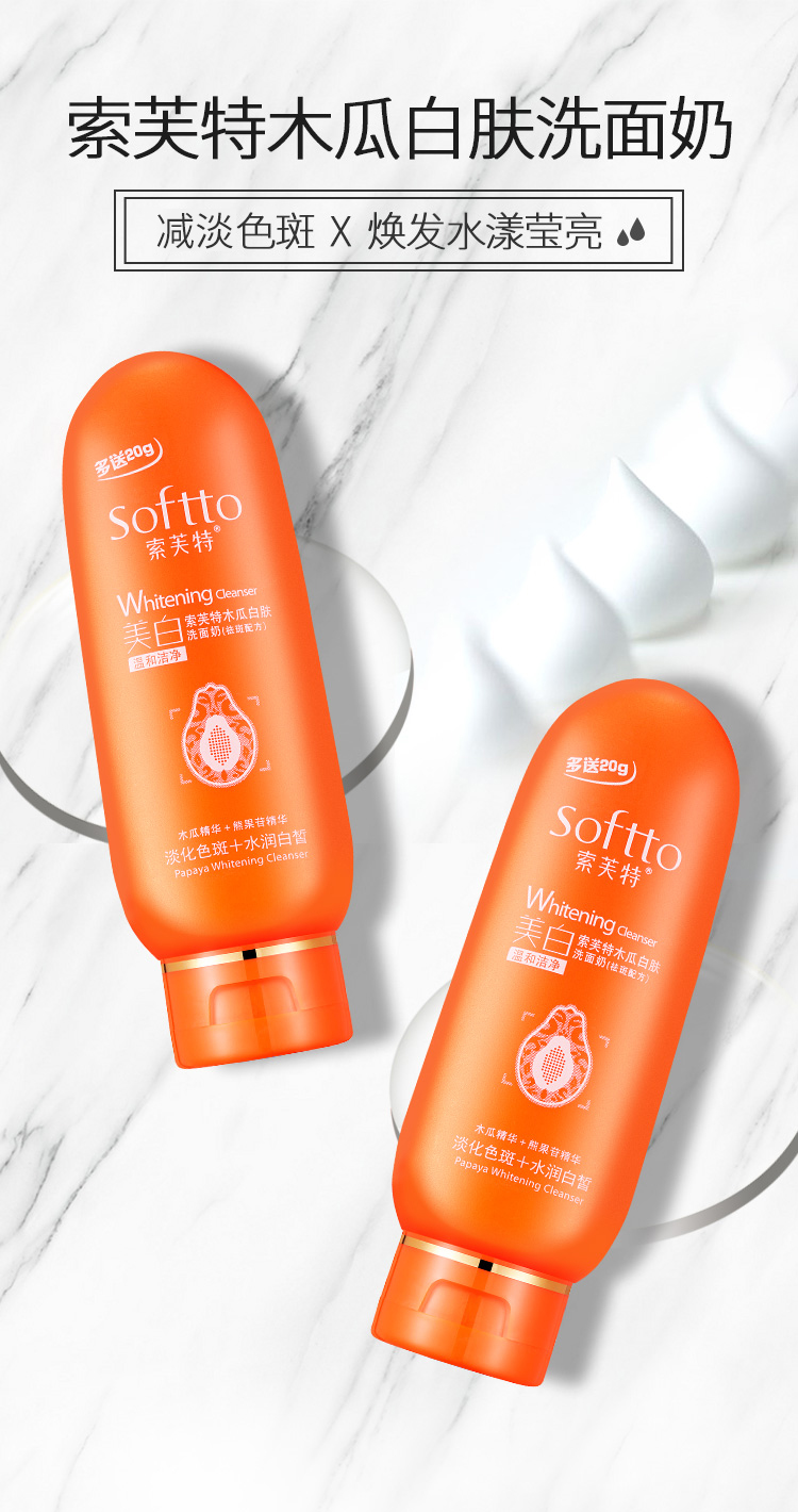 索芙特木瓜祛斑洗面奶淡化色斑女温和清洁补水控油淡斑洁面乳无泡