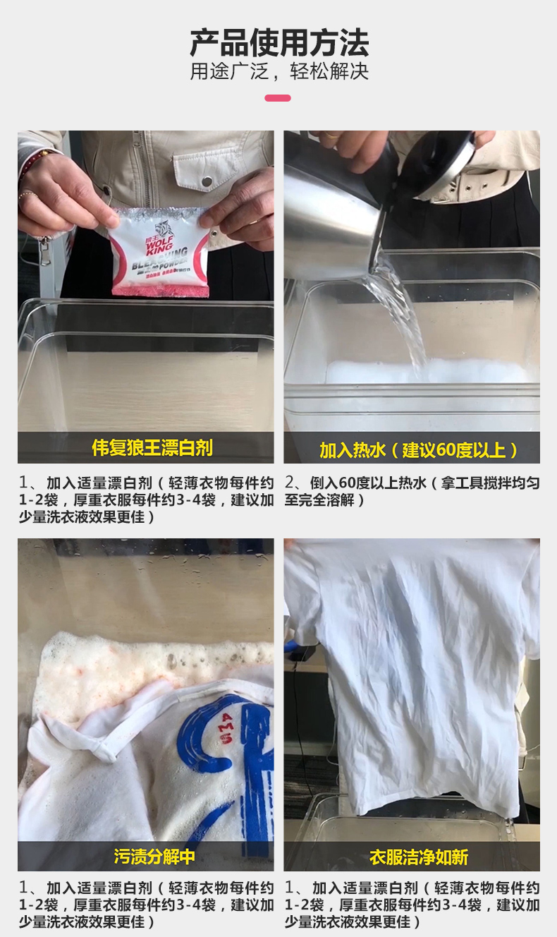 漂白剂白色衣物去黄增白专用洗白衣服去渍染色彩色还原漂泊粉神器